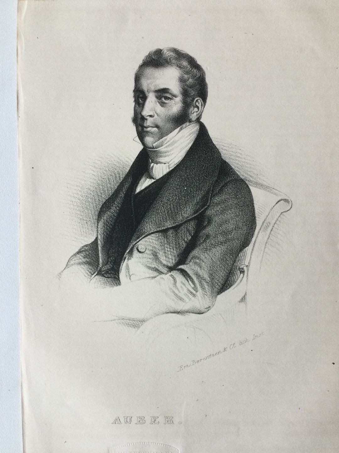 Litografi af Em. Bærentzen - Portræt af den franske komponist Daniel-Francois-Esprit Auber.