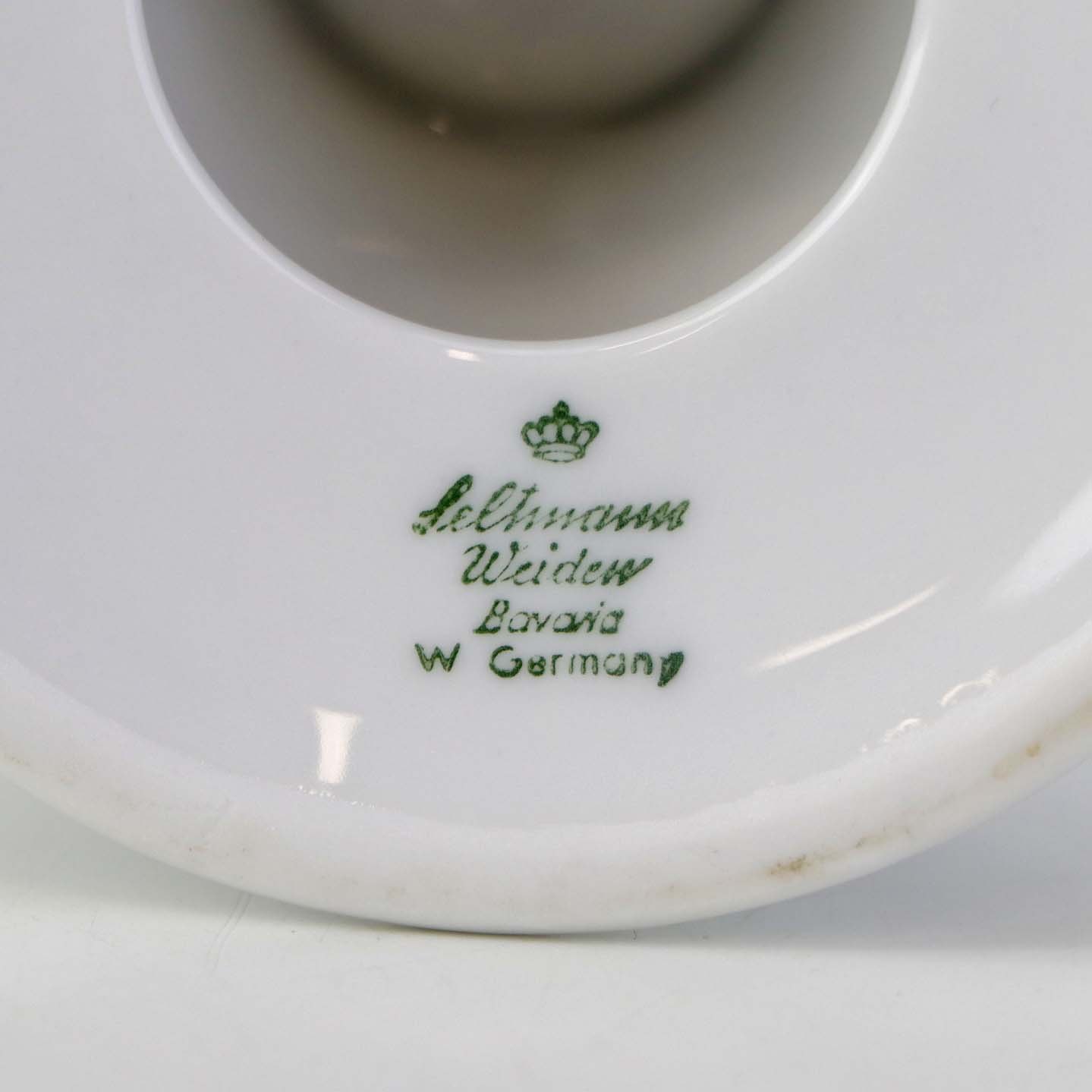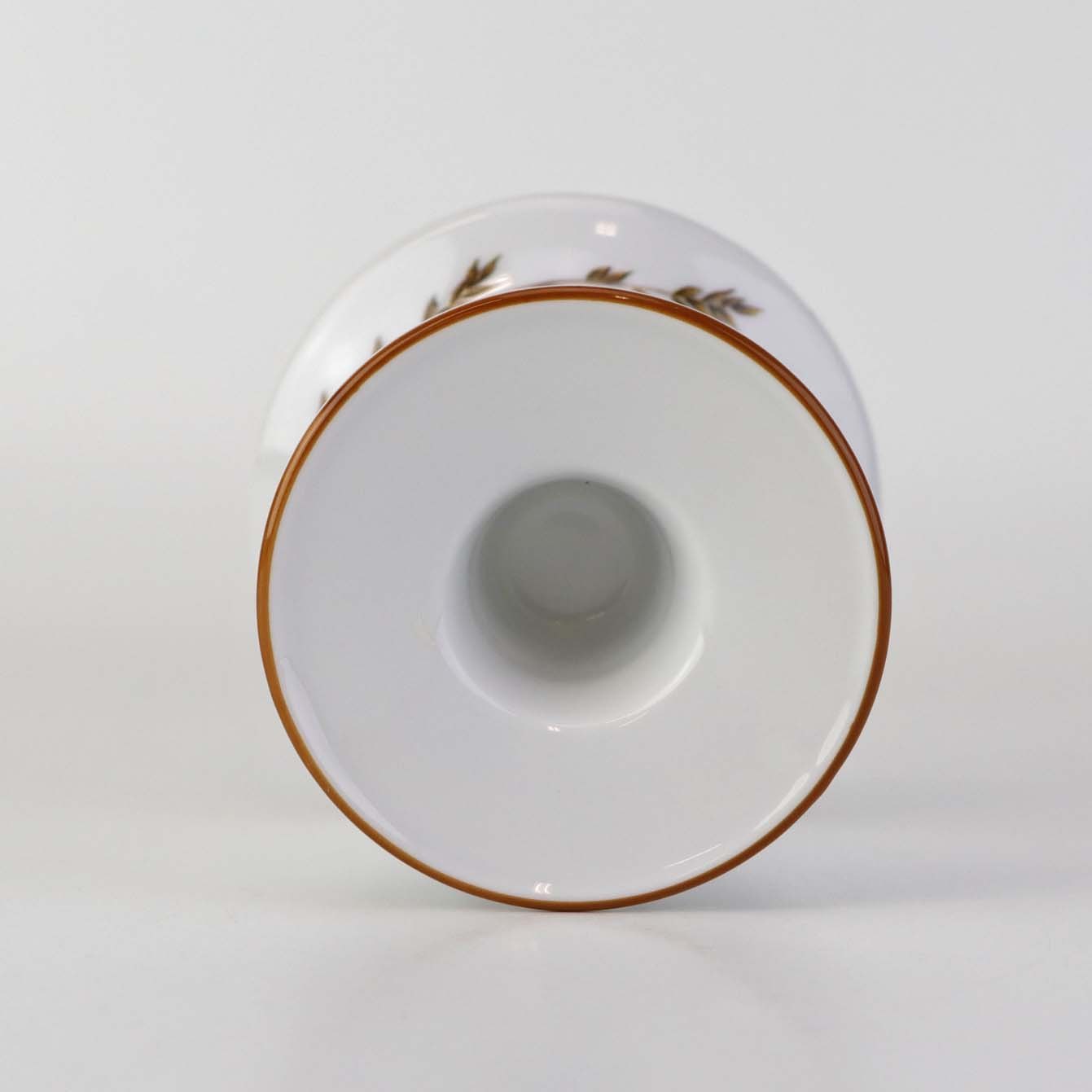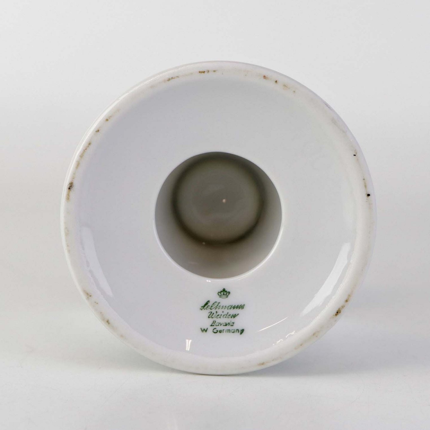 Text available in Danish: Lysestage i porcelæn med motiv af grene med blade fra stellet Jagtstel.