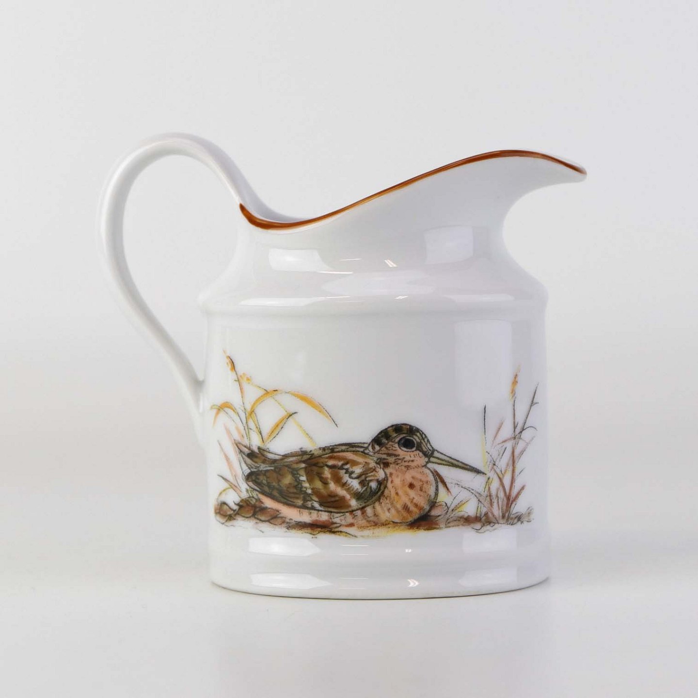 Kande til fløde i porcelæn med motiv af en sneppe fra stellet Jagtstel.