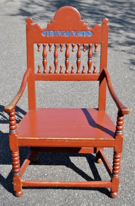 Armchair of painted beech wood 1812. Denmark. Painted red. 5-part slatted back. The back is carved with the initials: DN DK 1812. H.: 106 cm. W.: 67 cm. D.: 39.5 cm.