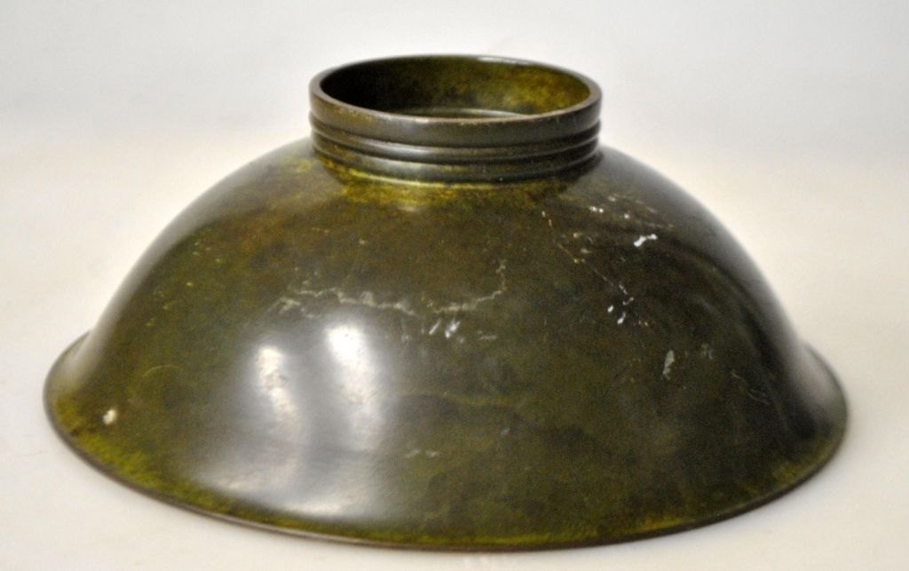 Small Danish patinated bronze bowl, art deco, approx. 1930. On a small stand rim. Stamped: Genuine refractory Bronze. H.: 5 cm. Dia.: 12.5 cm.