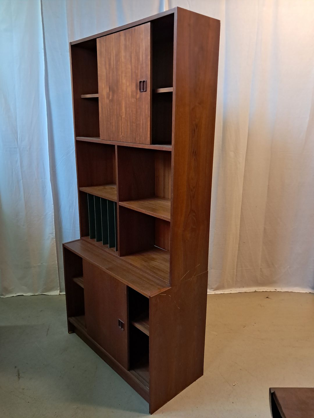 Reolsektion i fineret teaktræ, fra 1960erne.