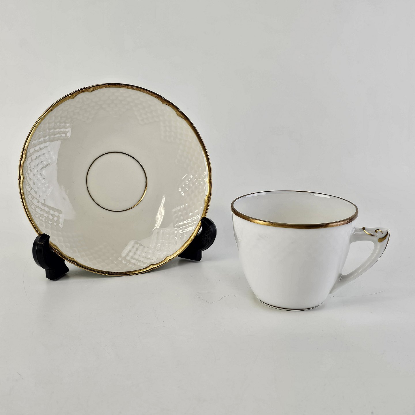 Hostrup er hvidt porcelæn i skælform med guldkant
