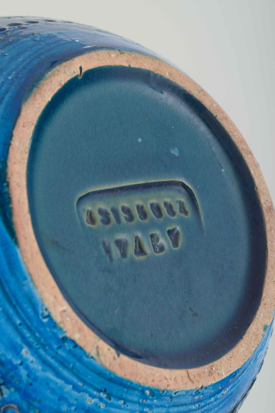 Aldo Londi (1911–2003) served as artistic director at Bitossi in Montelupo Fiorentino from 1946 until the 1980s. He created the world-famous Rimini Blu series in the 1950s, which quickly became an icon of Italian postwar design. The series is characterized by its vivid blue glazes combined with hand-incised geometric patterns, making each piece unique. Londi’s works are today highly sought-after collector’s items and represent a milestone in Italian studio ceramics.