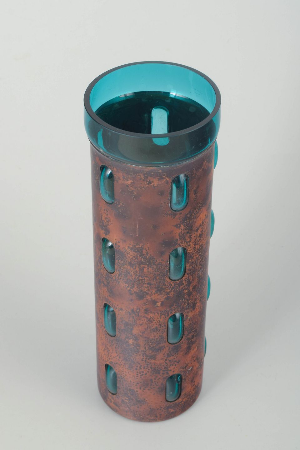 Vase in copper and glass. Mid-20th century.