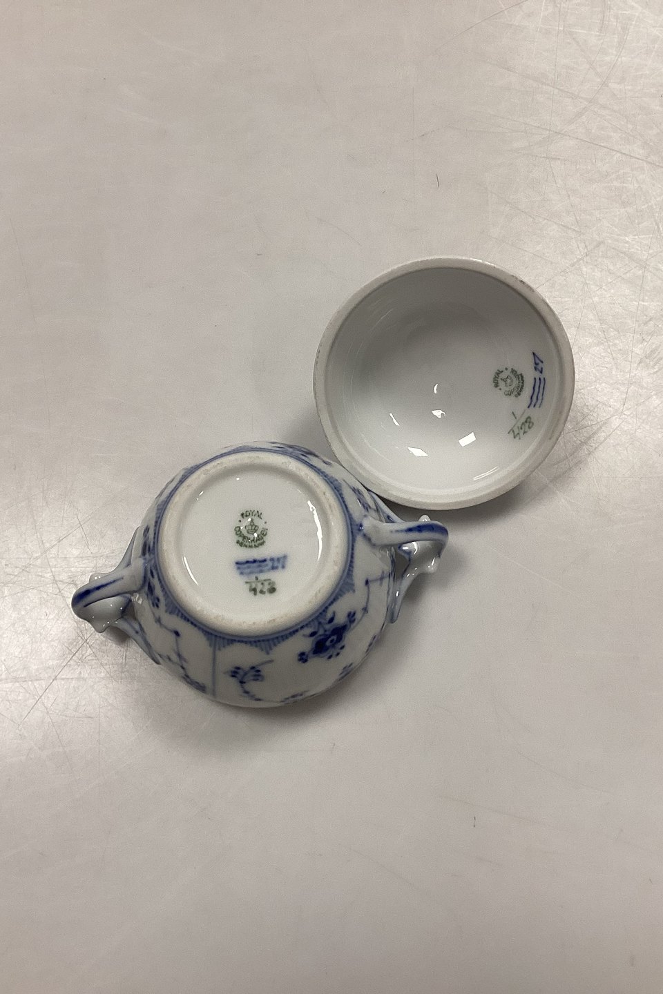Royal Copenhagen Blue Fluted Plain Sugar Bowl No. 428. Measures 8.5 x 10 cm / 3.34 in. x 3.93 in.