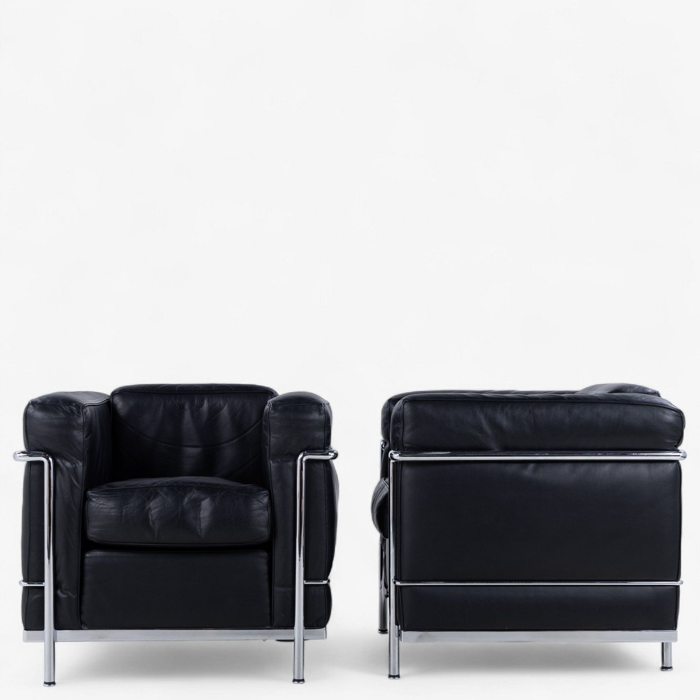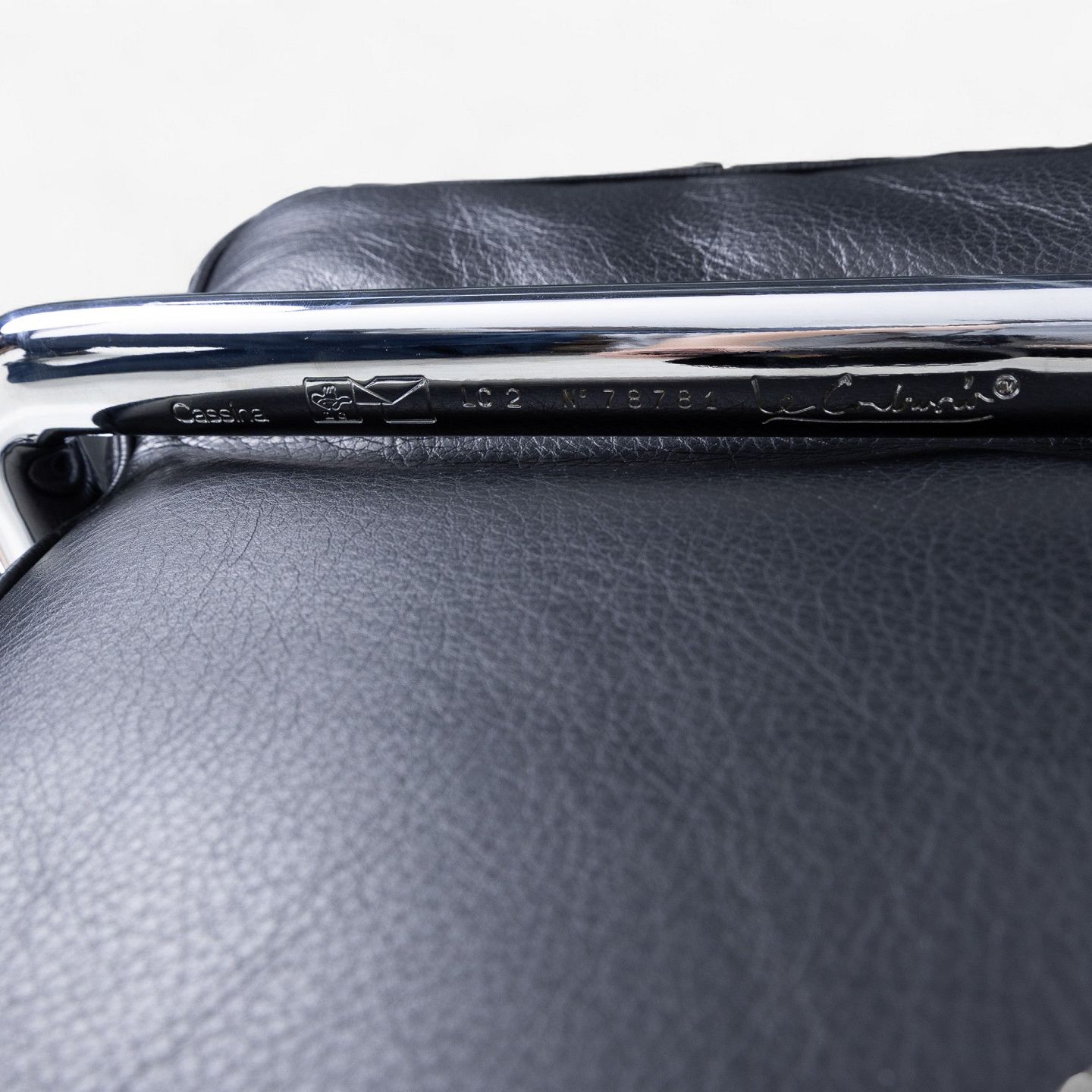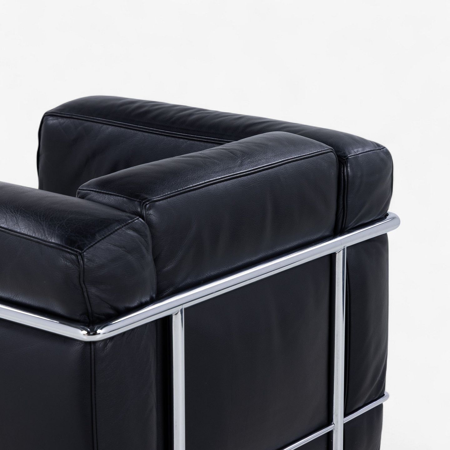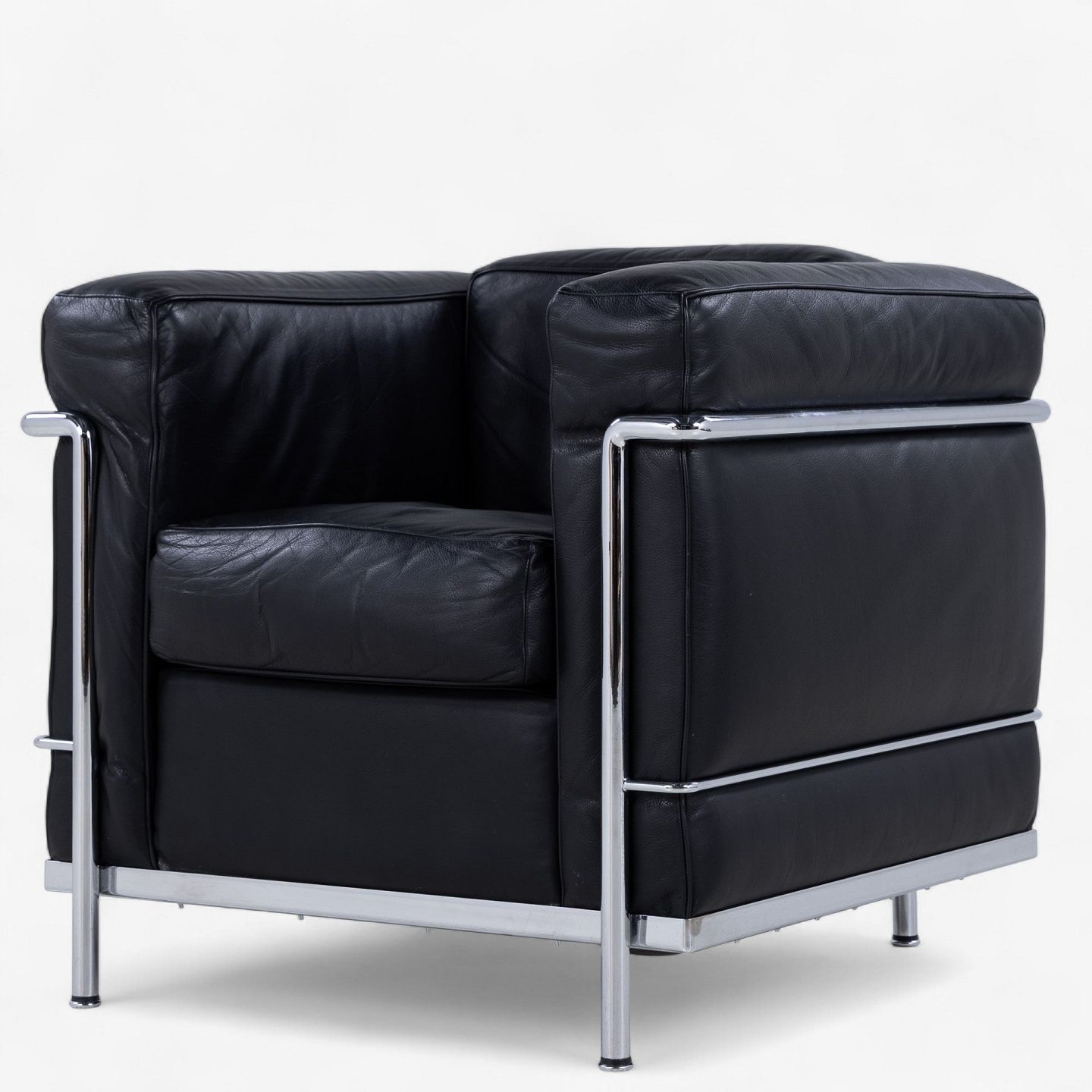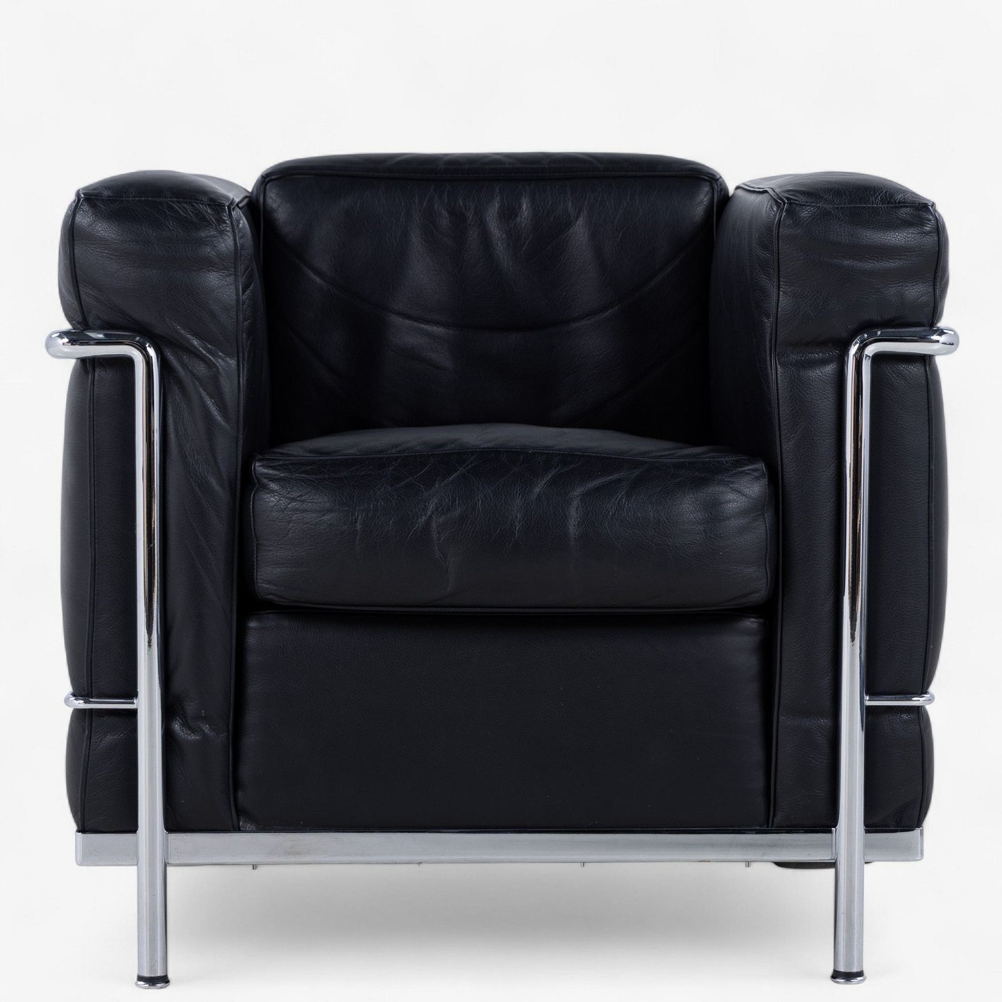 LC 2 - Armchair in original black leather with steel frame. Manufacturer's stamp.