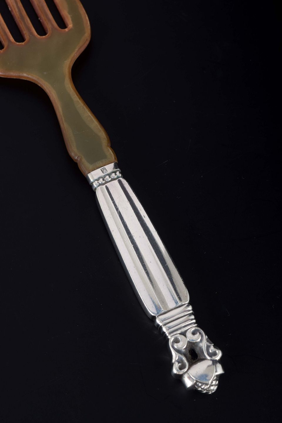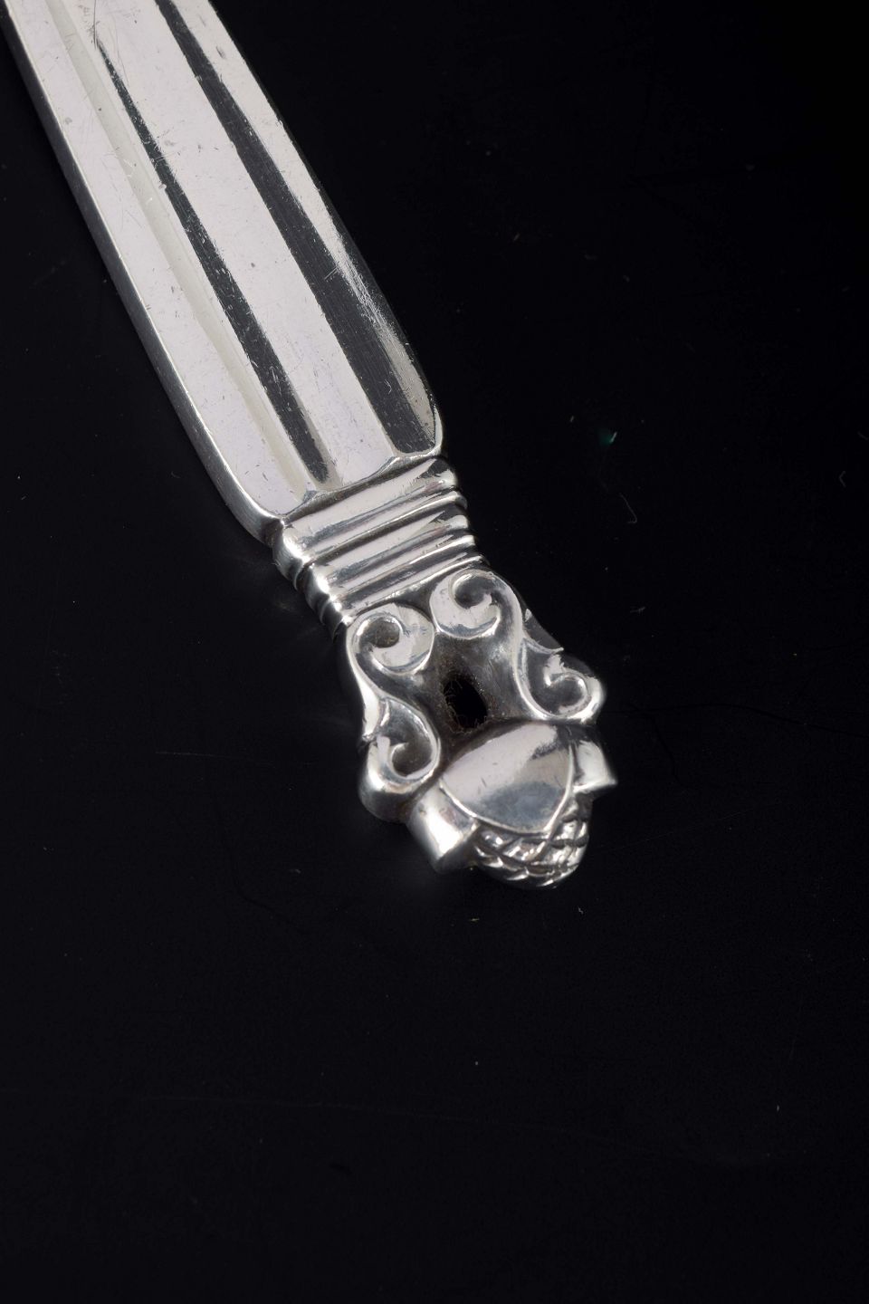 Elegant sardine fork in the classic “Acorn / Konge” pattern, designed by Johan Rohde in 1915. The handle is decorated with the characteristic acanthus leaf and acorn motif.