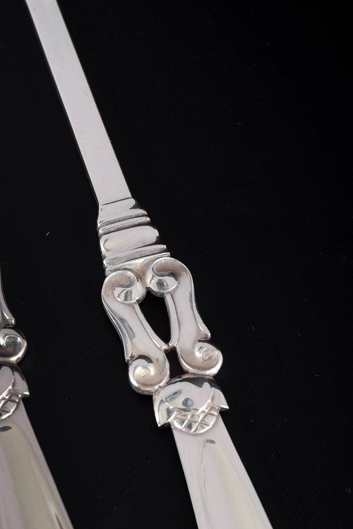 Elegant lobster forks in the classic “Acorn / Konge” pattern, designed by Johan Rohde in 1915. Decorated with the characteristic acanthus leaf and acorn motif.