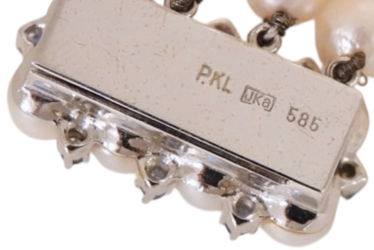 Double row pink Akoya pearl bracelet with 14 carat white gold pendant with sapphires