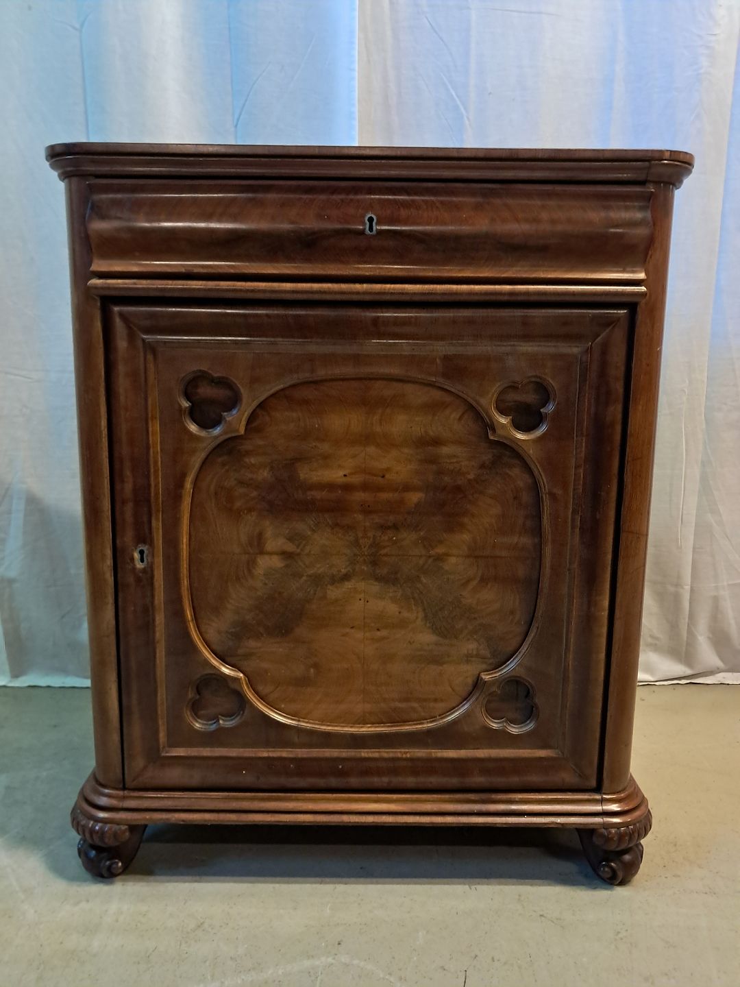Skab i fineret mahogni, fra 1900erne.