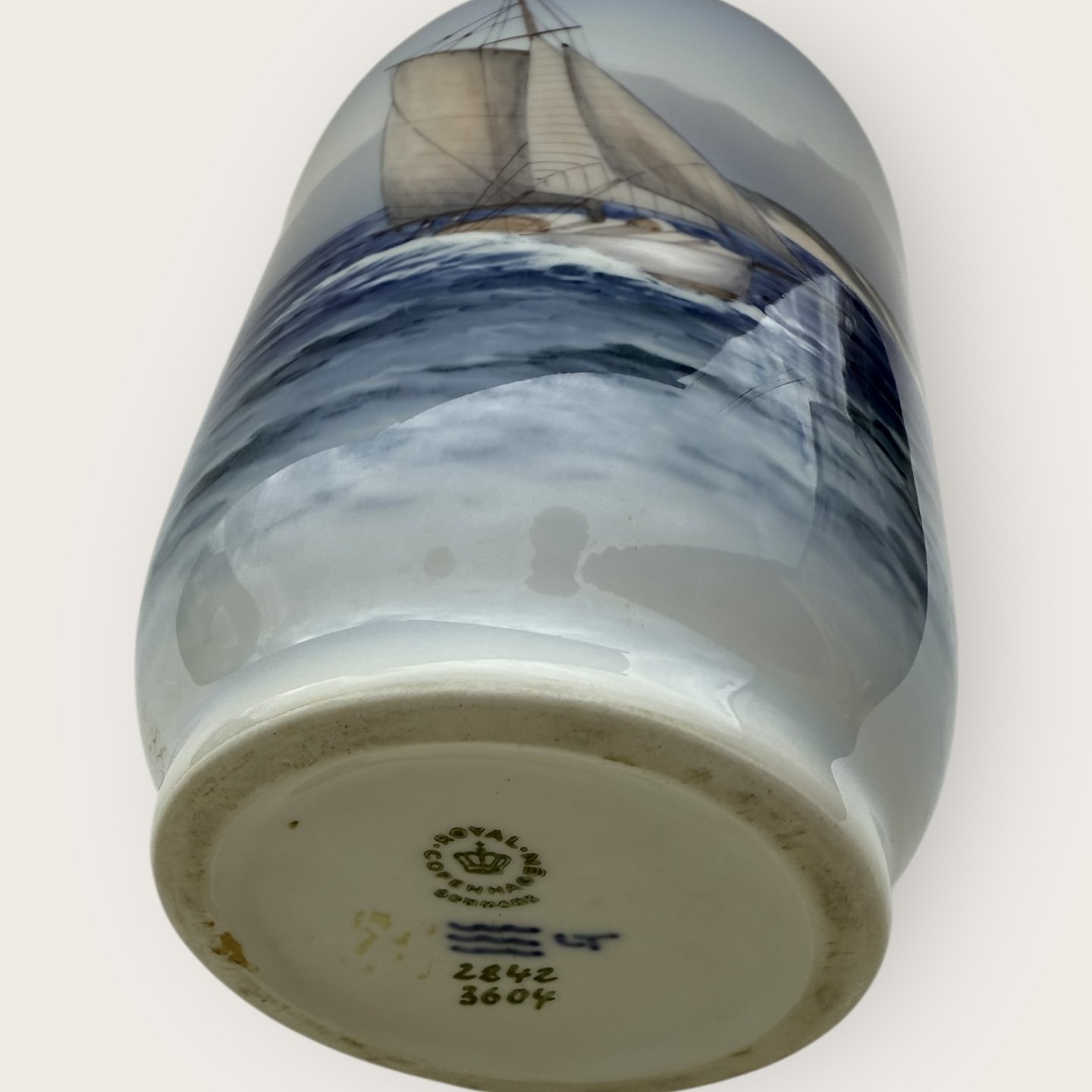Royal Copenhagen, Vase #2842/3604, Sailing ship, 21cm high, 2nd grade *Good condition*