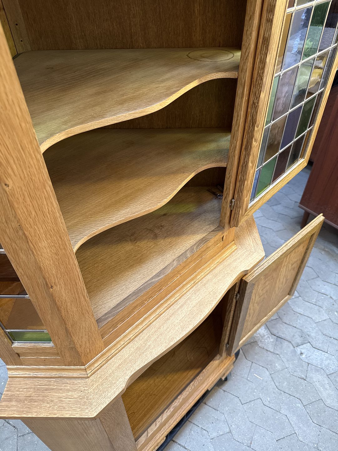 Hjørneskab i delvis massiv egetræ, fra 1980’erne