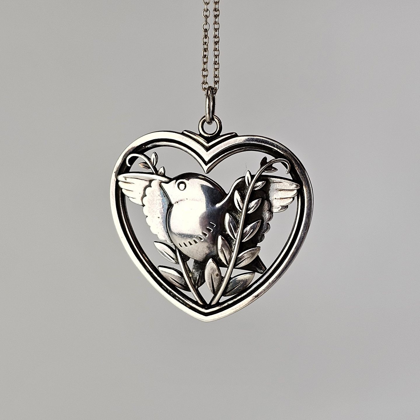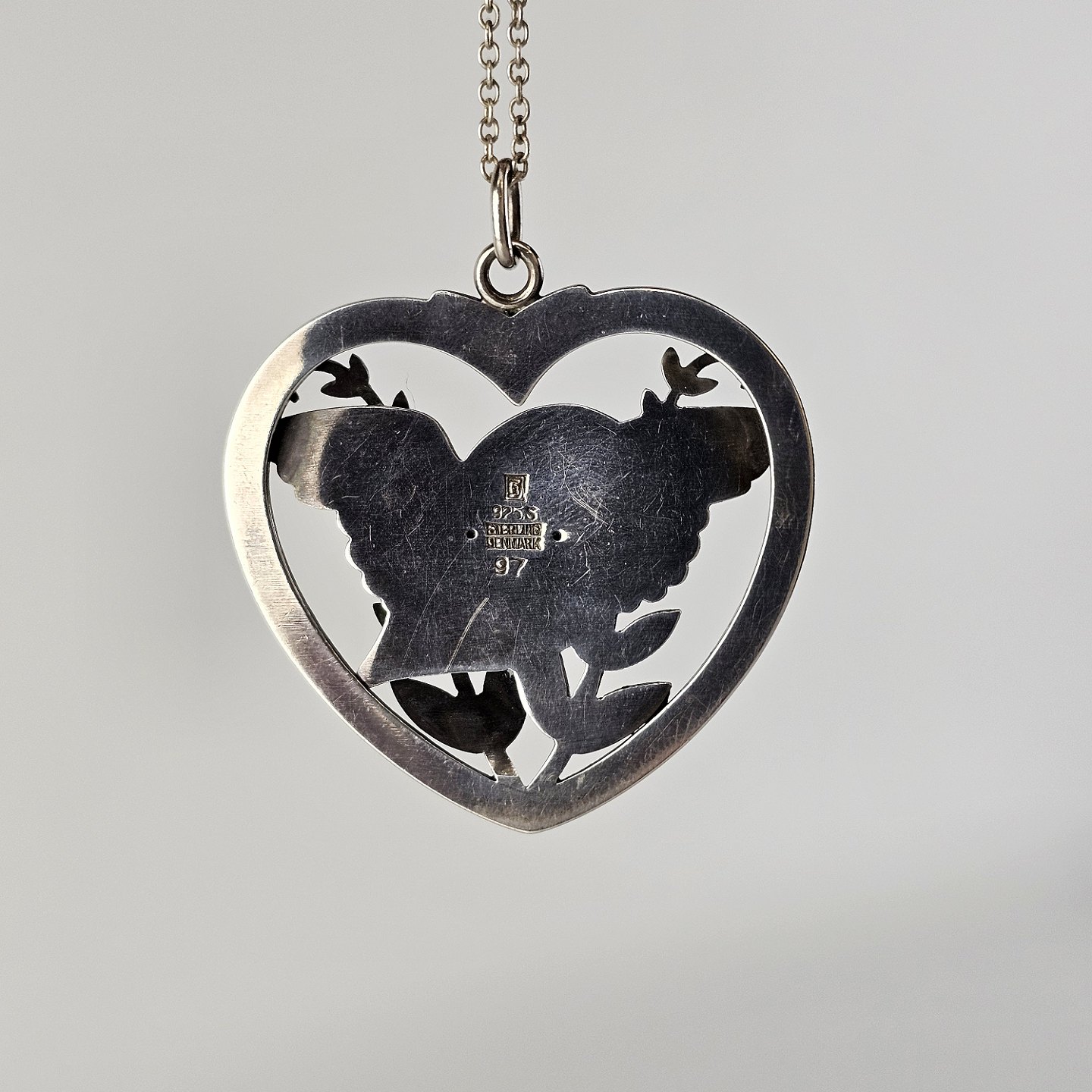 Vedhæng i sterling sølv med motiv af en fugl og to kviste