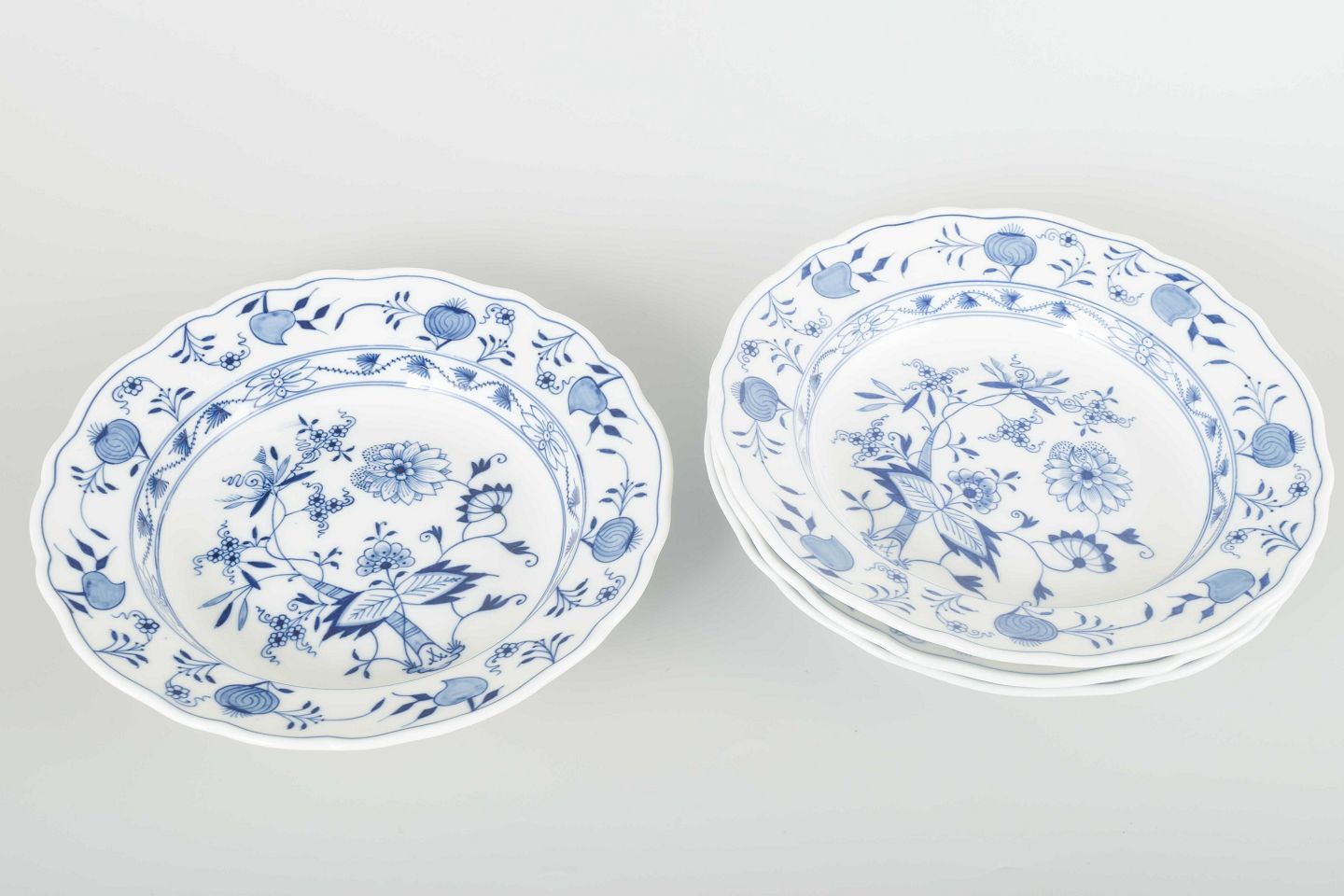 4 soup plates, “Blue Onion” pattern, mid-20th century.