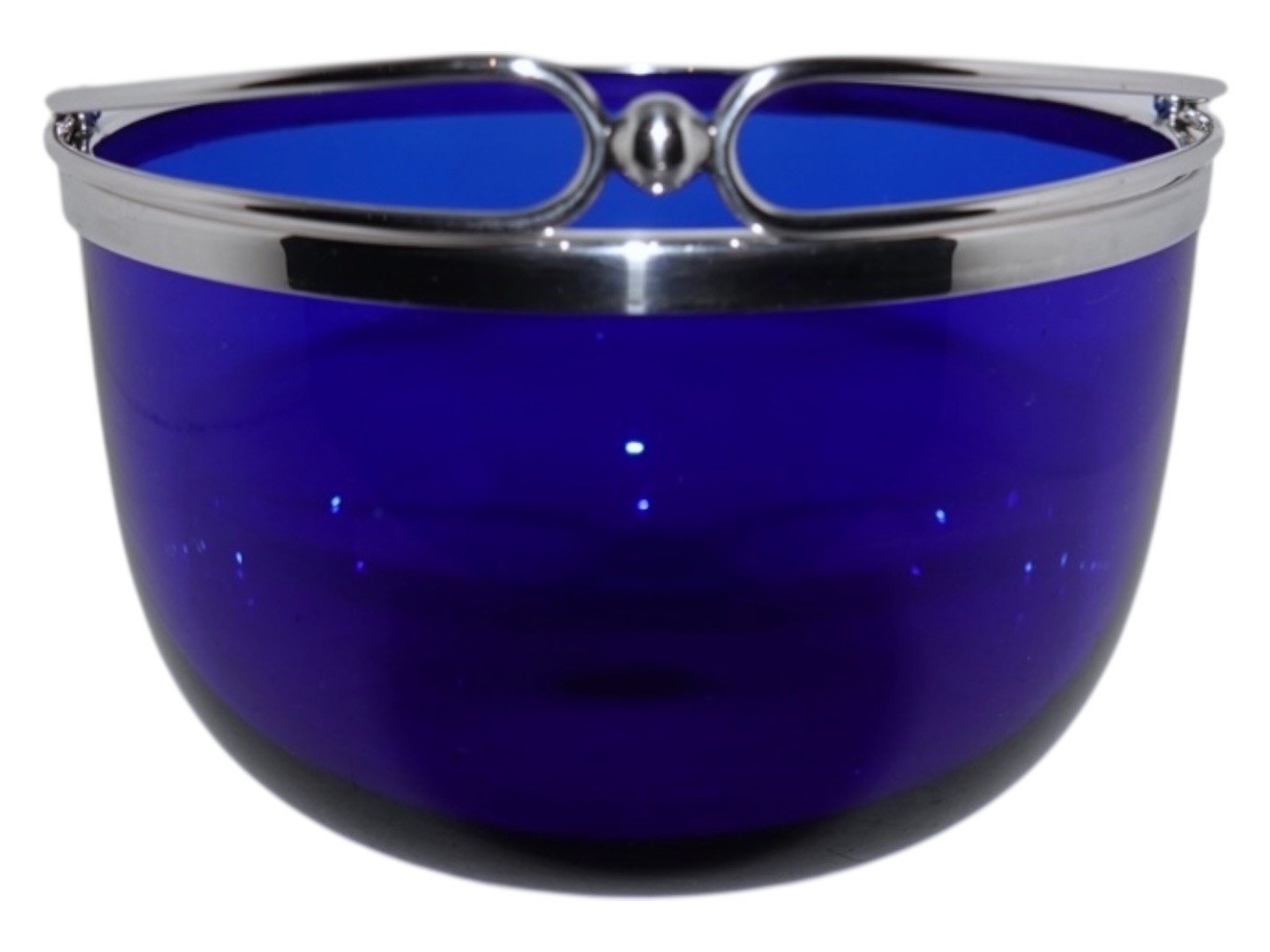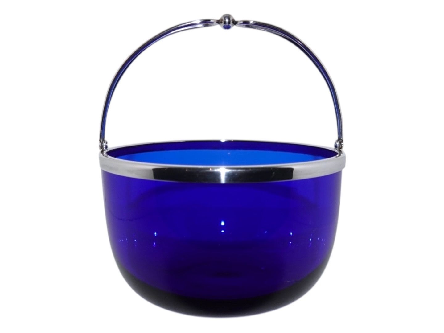 Holmegaard blue glass sugar bowl with silver edge and handle. It is from the 1950'es.