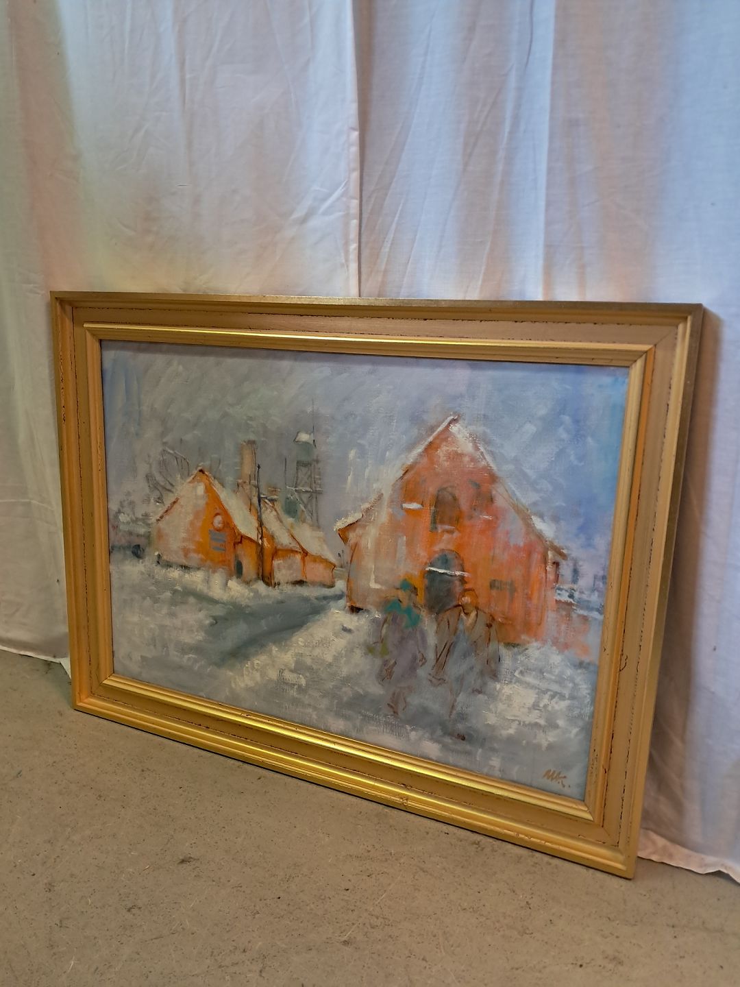 Maleri af Dragør Havn i guldmalet ramme, af : Mogens Amdi Thorsen (1924-2016)