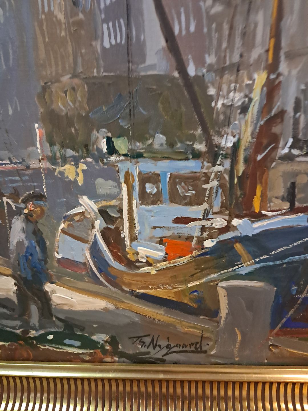 Maleri af Nyhavn i guldmalet ramme, af : Th. Nygaard