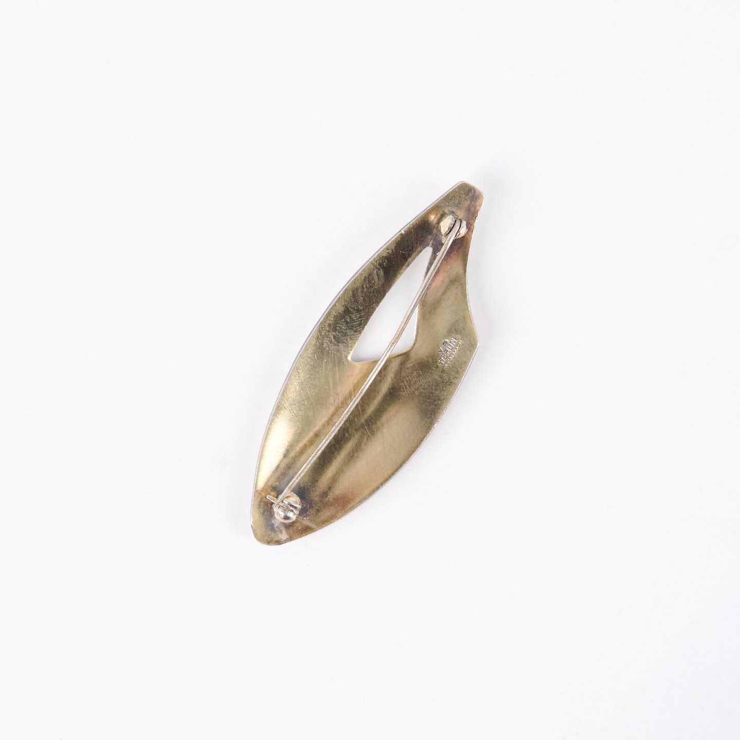 Brooch – White Enamel – Stamped V.R Sterling Denmark – L: 6 cm, W: 2 cm