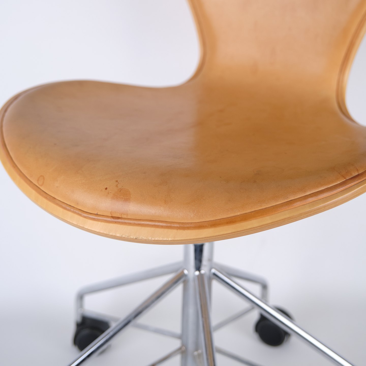 Syver Office Chair - Model 3117 - Patinated Natural Leather - Swivel Function - Arne Jacobsen - Fritz Hansen