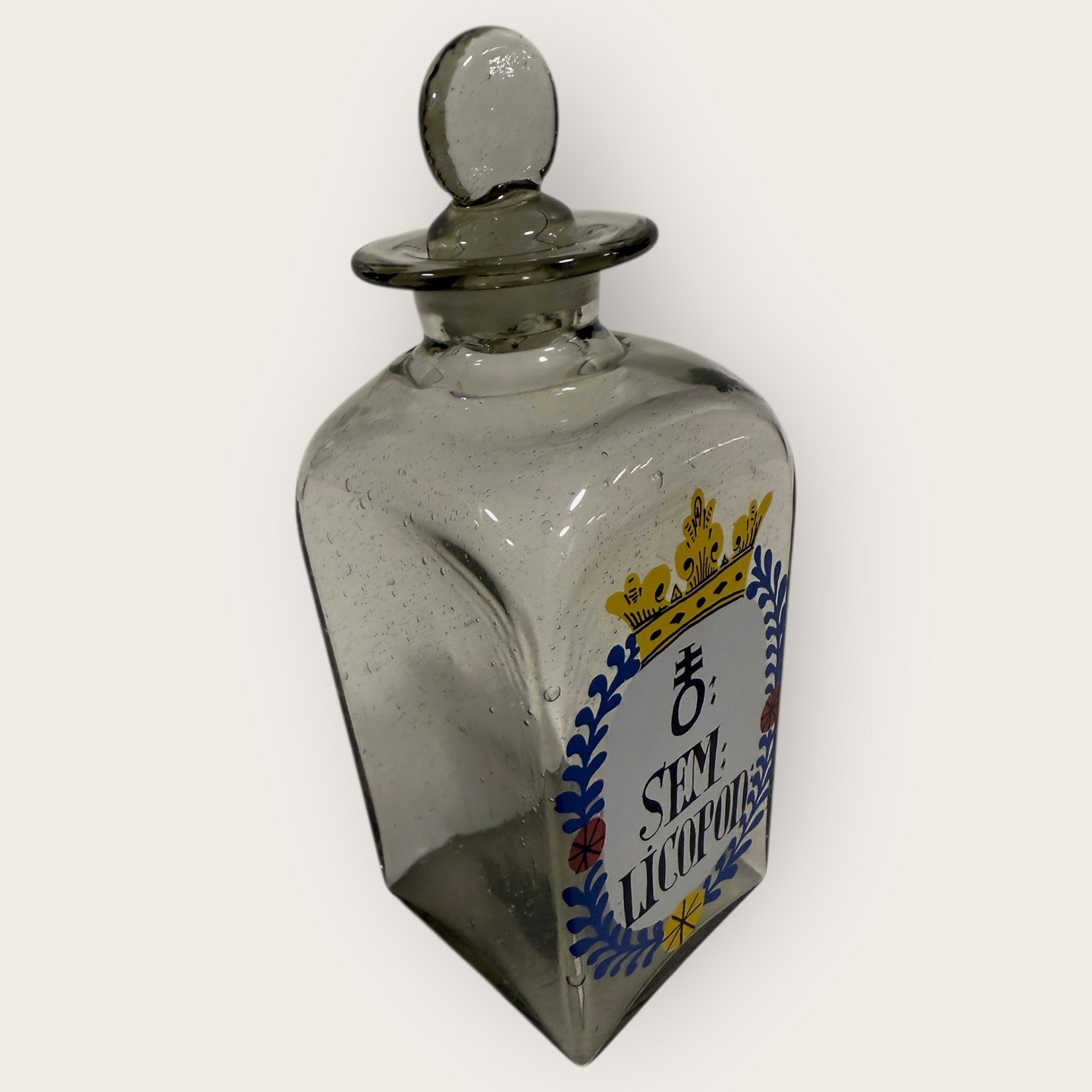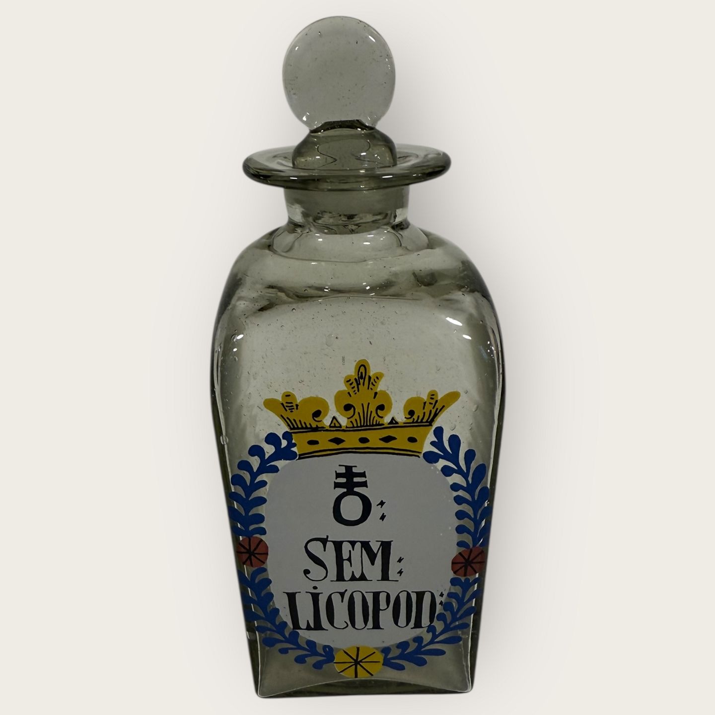 Holmegaard apothecary bottle from 1977, Sem Licopod, Dimensions: 17.5x6.5x6.5cm, the bottles are mouth-blown copies of original old apothecary bottles, Signed Hg.