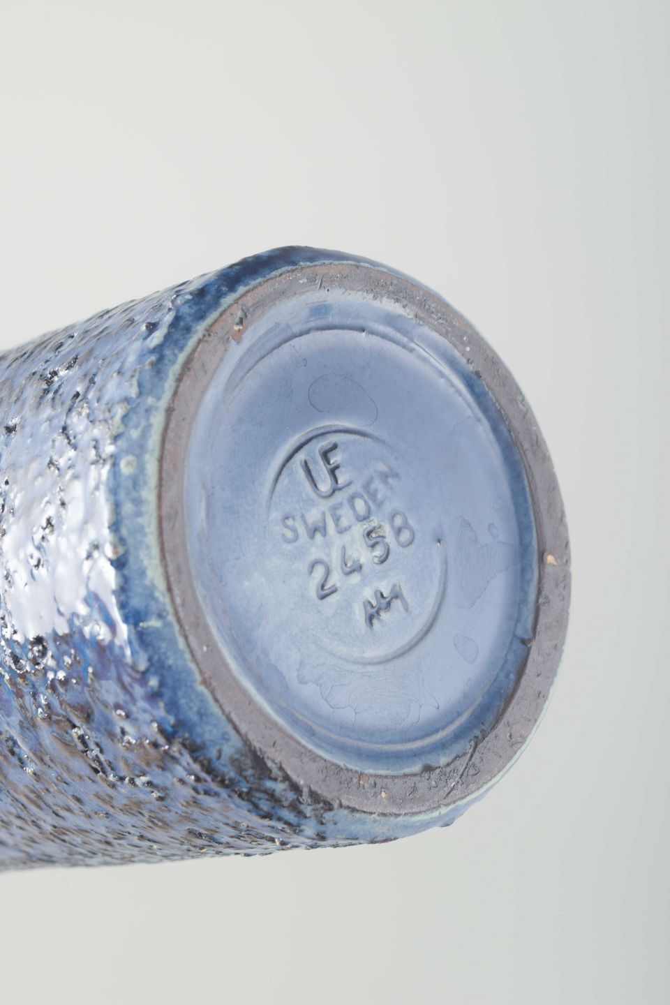 Ingrid Atterberg (born May 11, 1920 in Härnösand – died March 27, 2008 in Uppsala) was one of Upsala-Ekeby’s most prominent designers in the 1950s and 60s. She worked with pure, geometric forms and experimental glazes, often in blue tones, giving her works a timeless and sculptural quality.