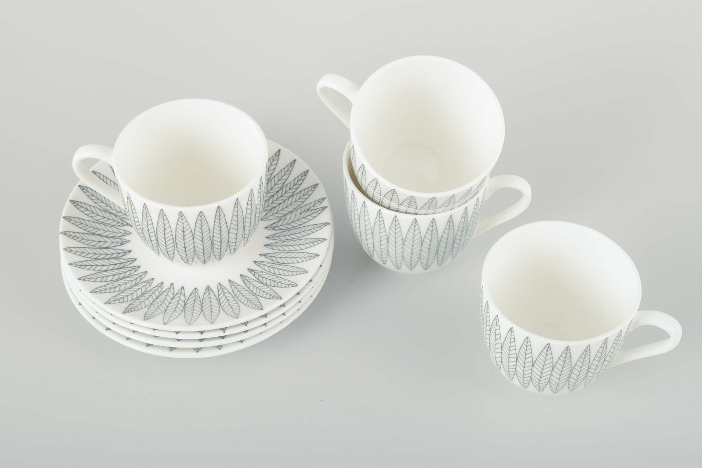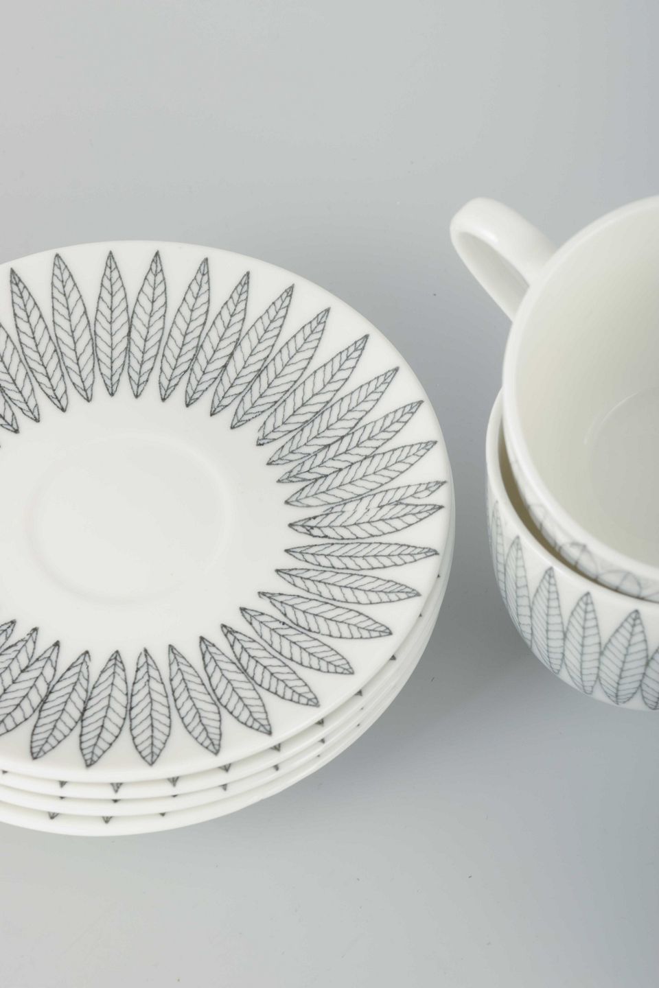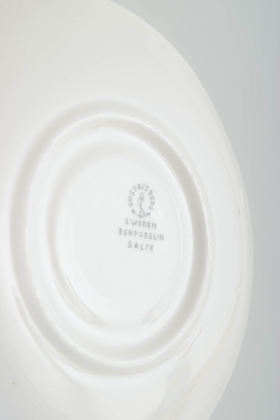 Faience with the characteristic grey “Salix” pattern on white ground, designed by Stig Lindberg.