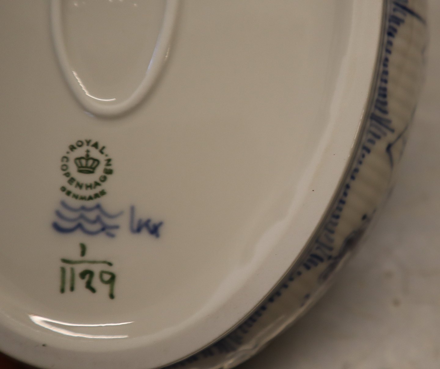 1129-1 Ragout bowl, oval 1 qt. ca 16 x 27.5 cm Royal Copenhagen Blue Fluted Full Lace. In nice and mint condition, Voll Spitze