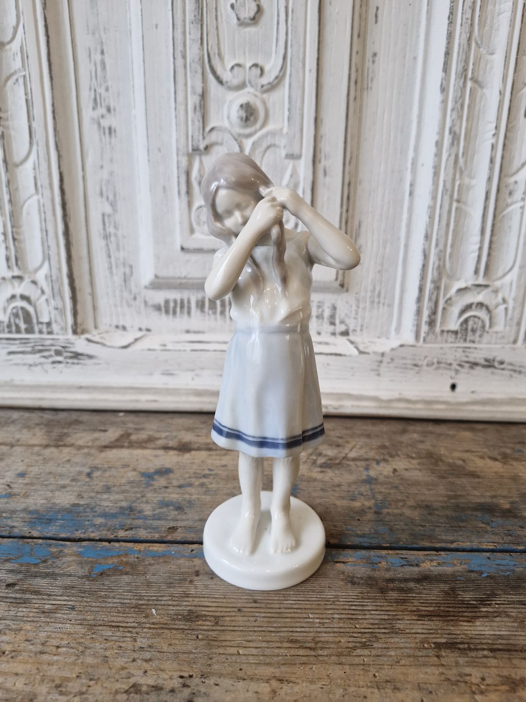 B&G rare Art Nouveau figurine, girl braiding hair