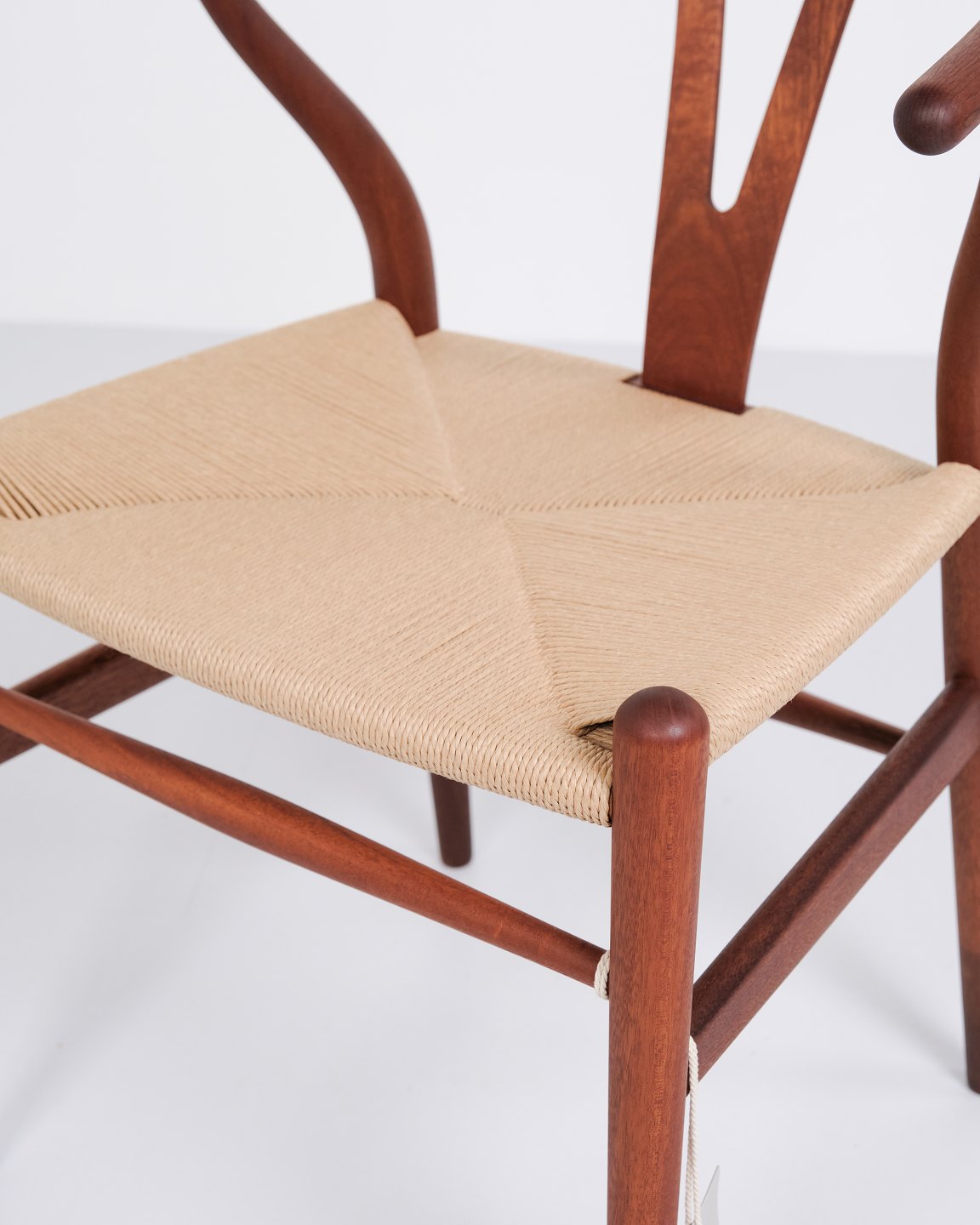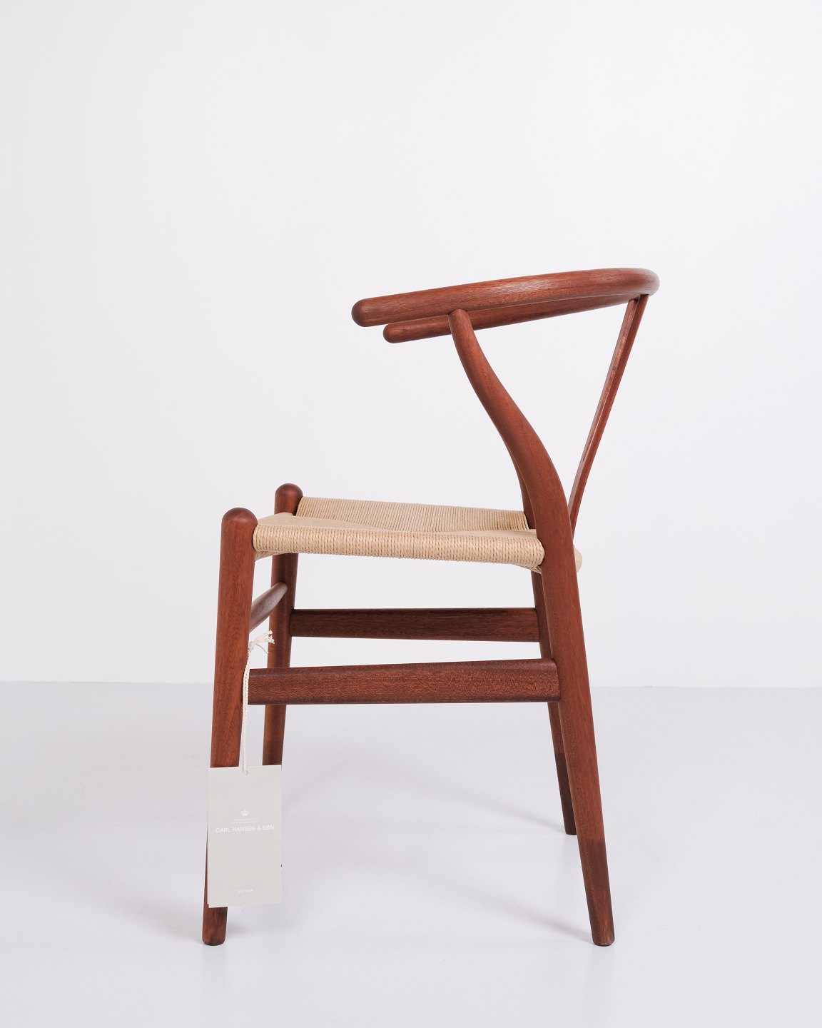 Set of four Hans J. Wegner Wishbone-chairs, model CH24. Mahogany with natural wicker. Carl Hansen & Søn.