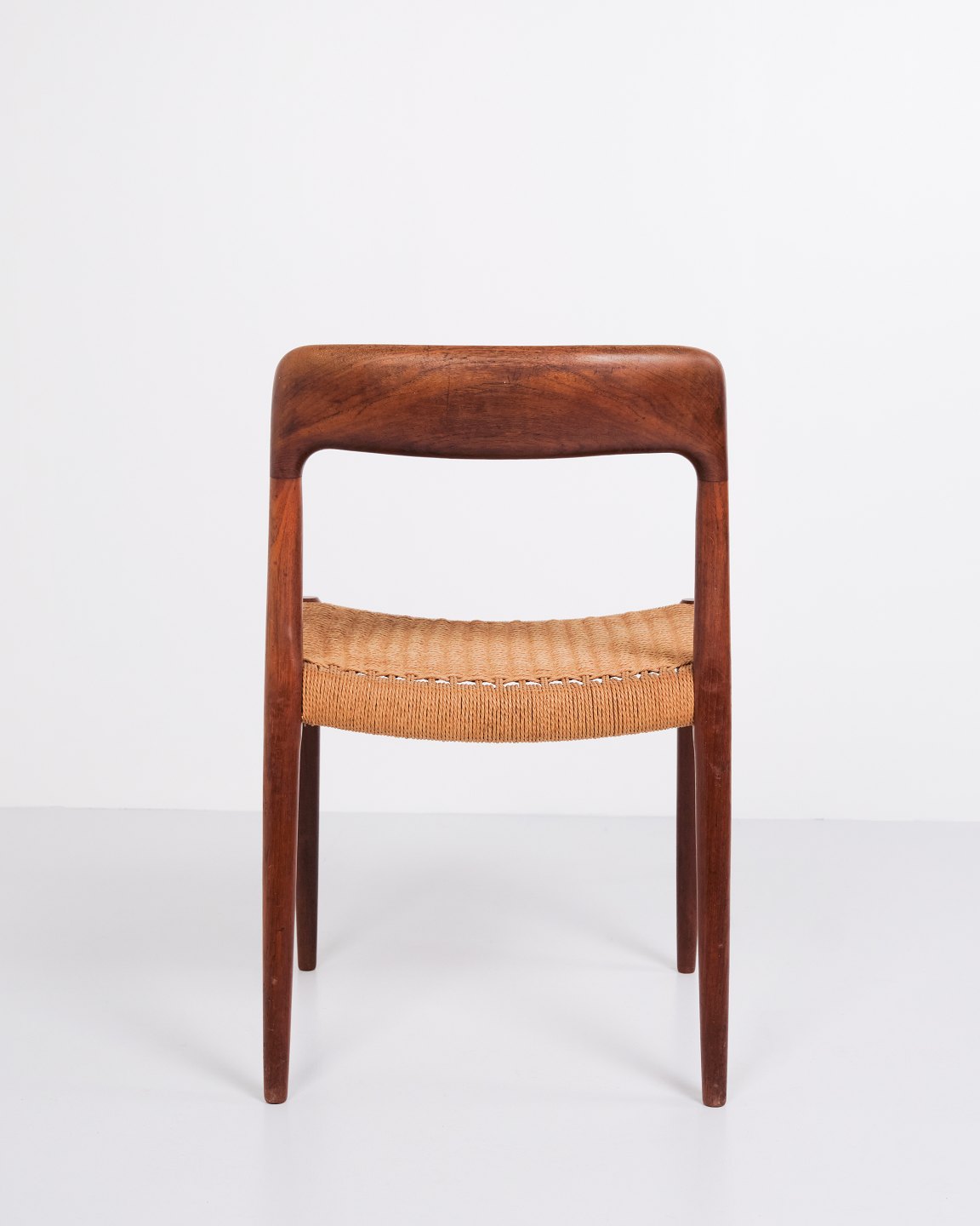 Set of Five Dining Chairs - Model 75 - Teak - Paper Wicker - N.O Møller - 1960s