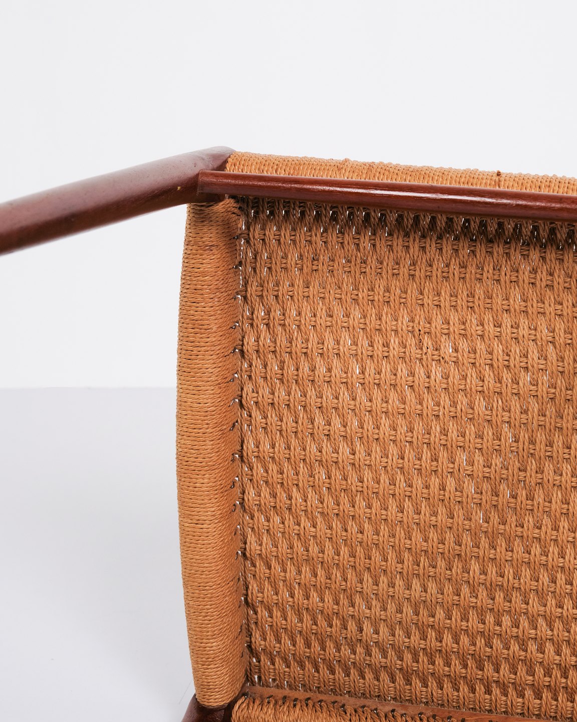 Set of five N.O. Møller dining chairs, model 75. Teak and paper wicker, 1960s.