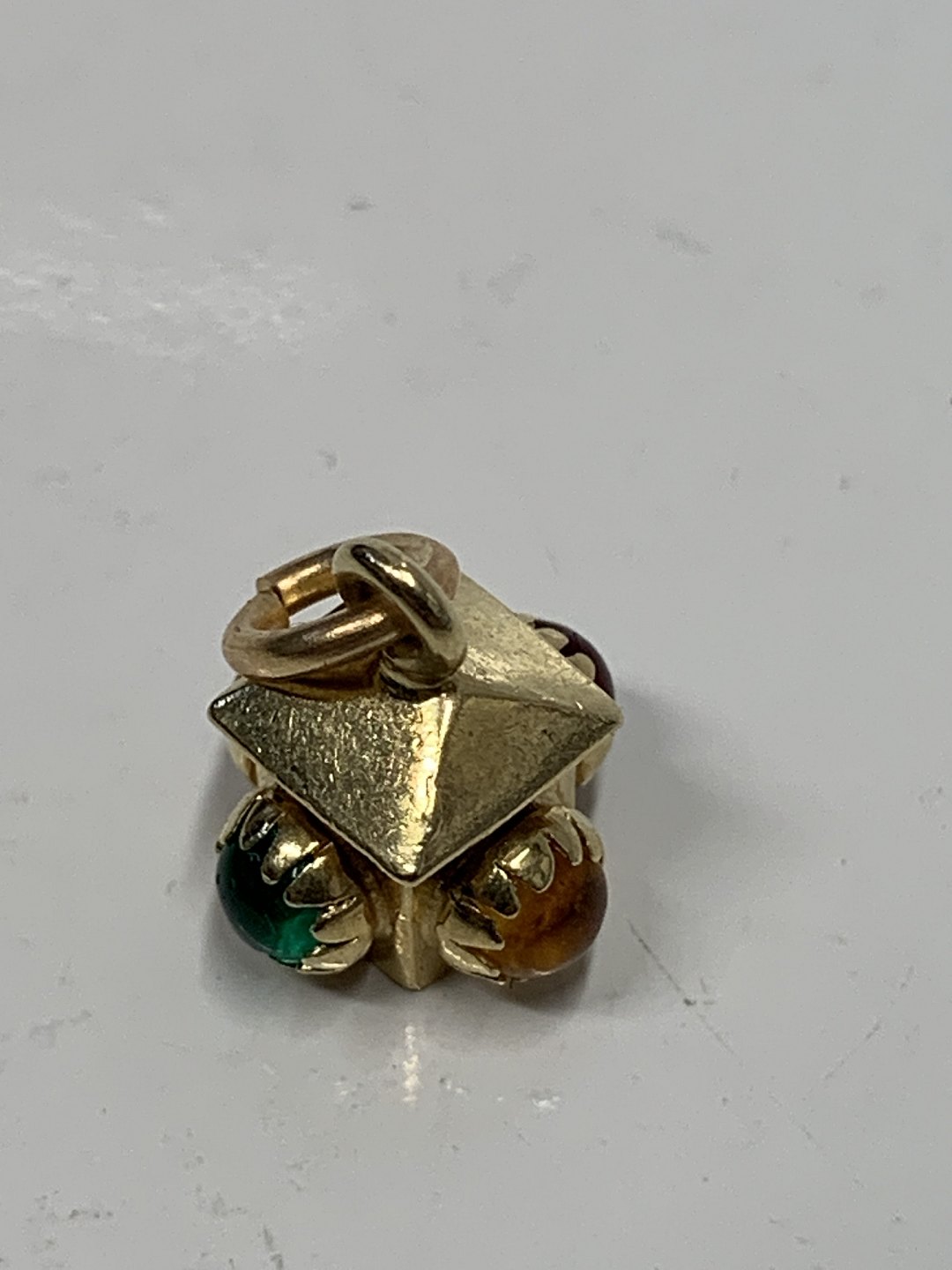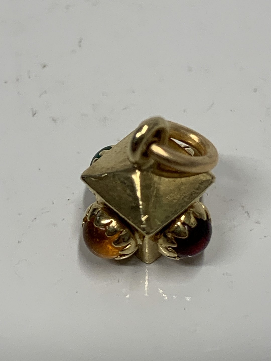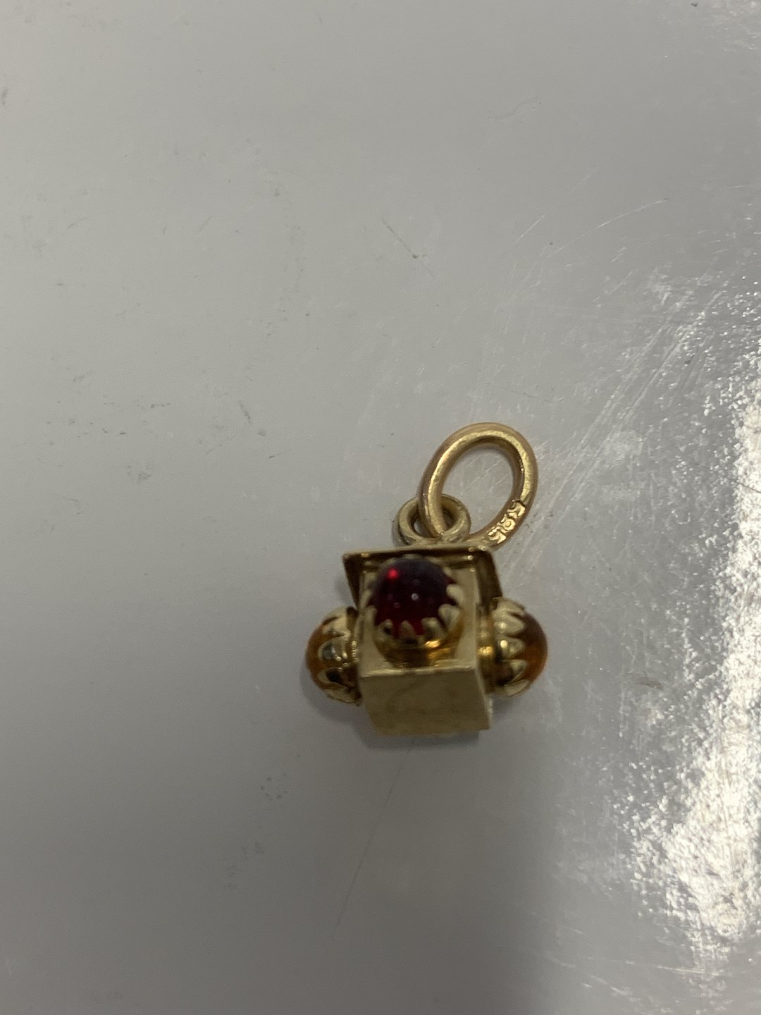 Lamp with red/yellow and green stone Charms / Pendant in 14 carat gold