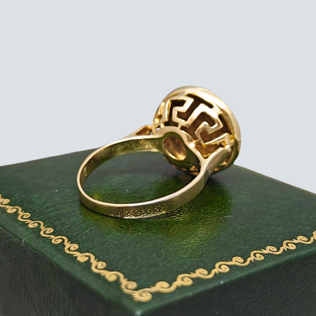 A ring in 14k gold with decoration of a head.