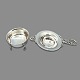 Danish tea strainer with saucer, both in sterling silver. L. 14 cm. W. 7.7 cm. Note: with a small soft bulge at the bottom of the strainer.