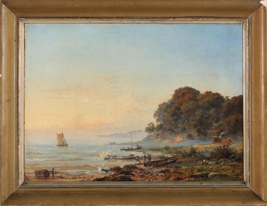Kiærschou, Frederik Christian (1805 - 1891) Denmark: The fishermen return home from the sea. The fishermen return home from the sea. Oil on canvas. Very faintly signed.
