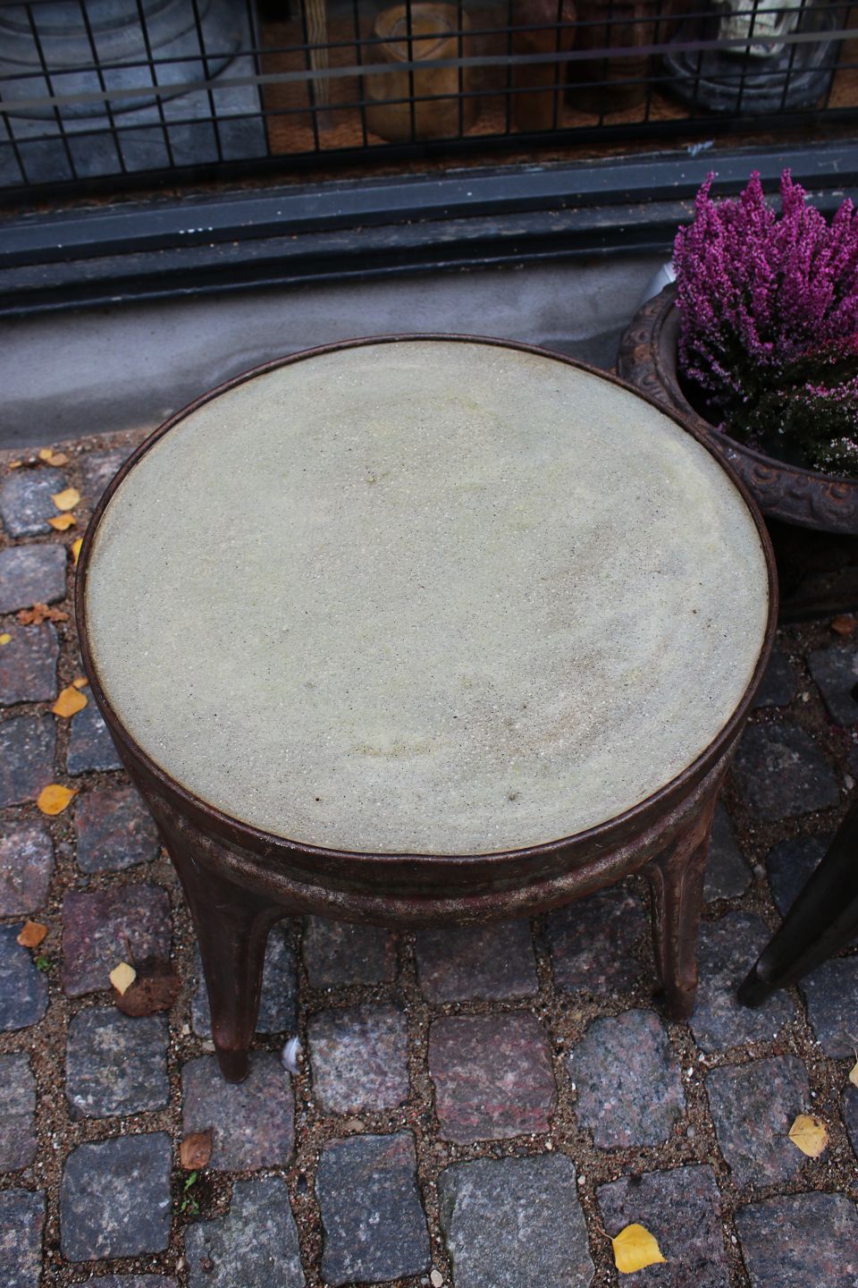 from around 1930-40 with fantastically fine patina and with cast concrete top. H: 47cm. Dia.: 50cm.