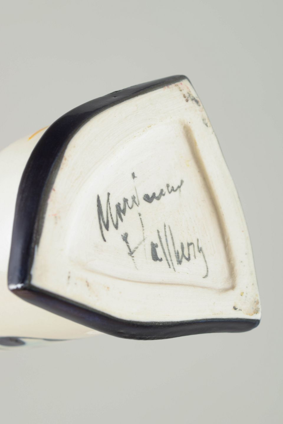 Marianne Hallberg (born 1952) is a Swedish studio ceramic artist known for her humorous and graphically expressive unique works. Her visual language draws from the Memphis movement and the poetic potential of everyday objects. Produced in small editions and highly sought after by collectors.