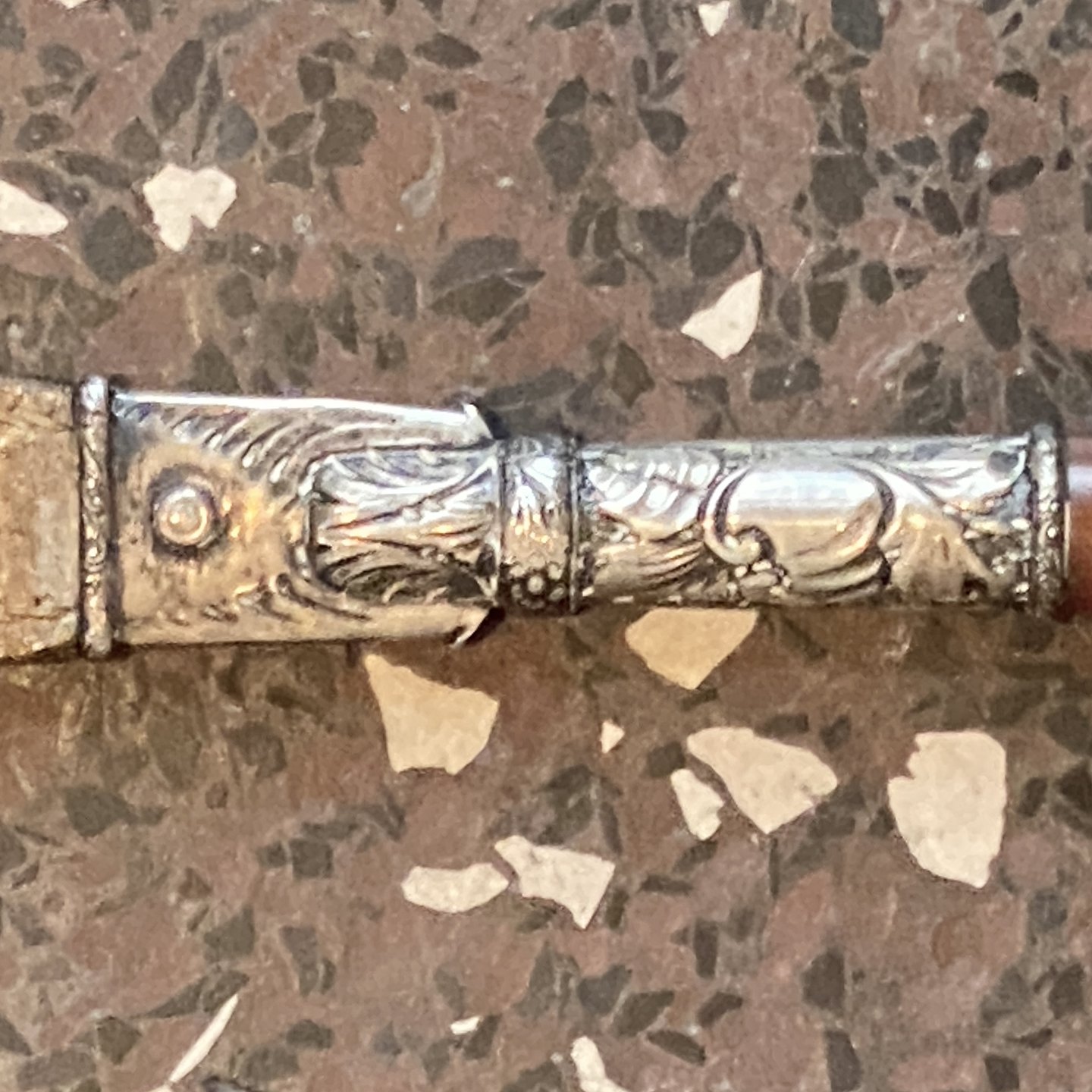 Argentine whip with silver mounting. Stamped 800s and mark from Argentina. Dimensions: Total 88 cm. Dimensions: Shaft 38 cm.