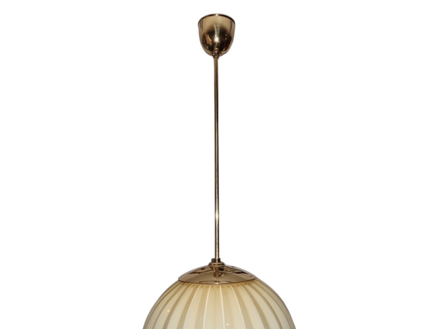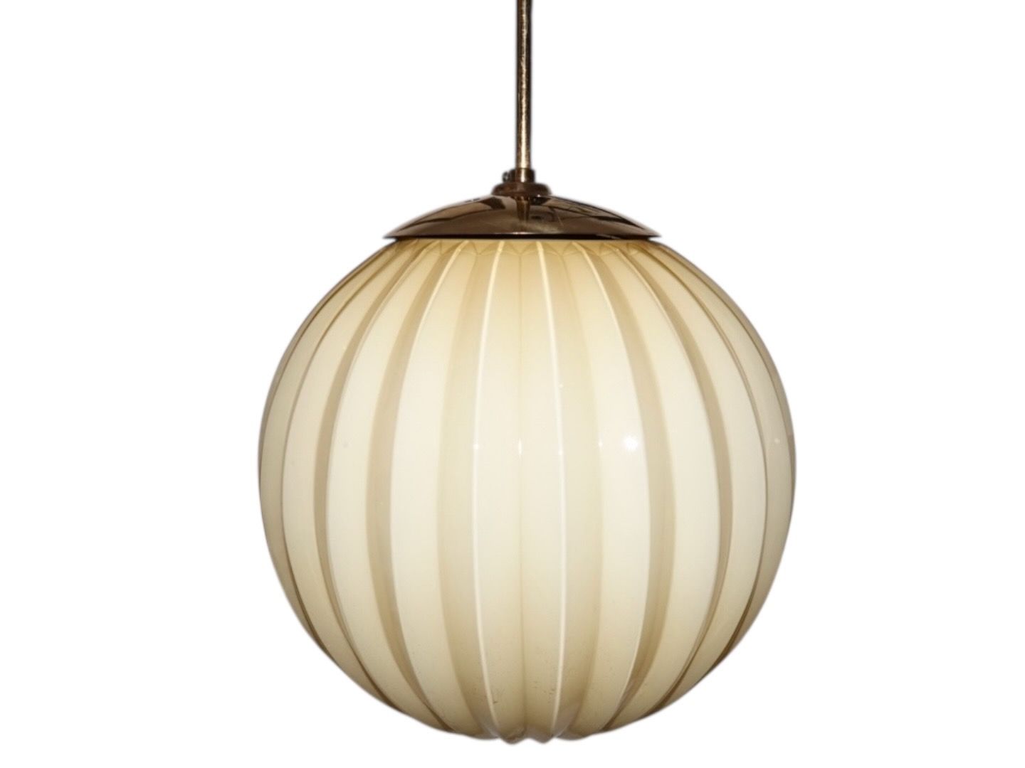 Art Deco ceiling lamp, creme colored glass with brass stick from around 1940.