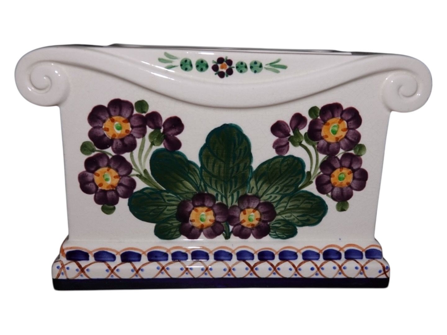 Aluminia square vase with grid.