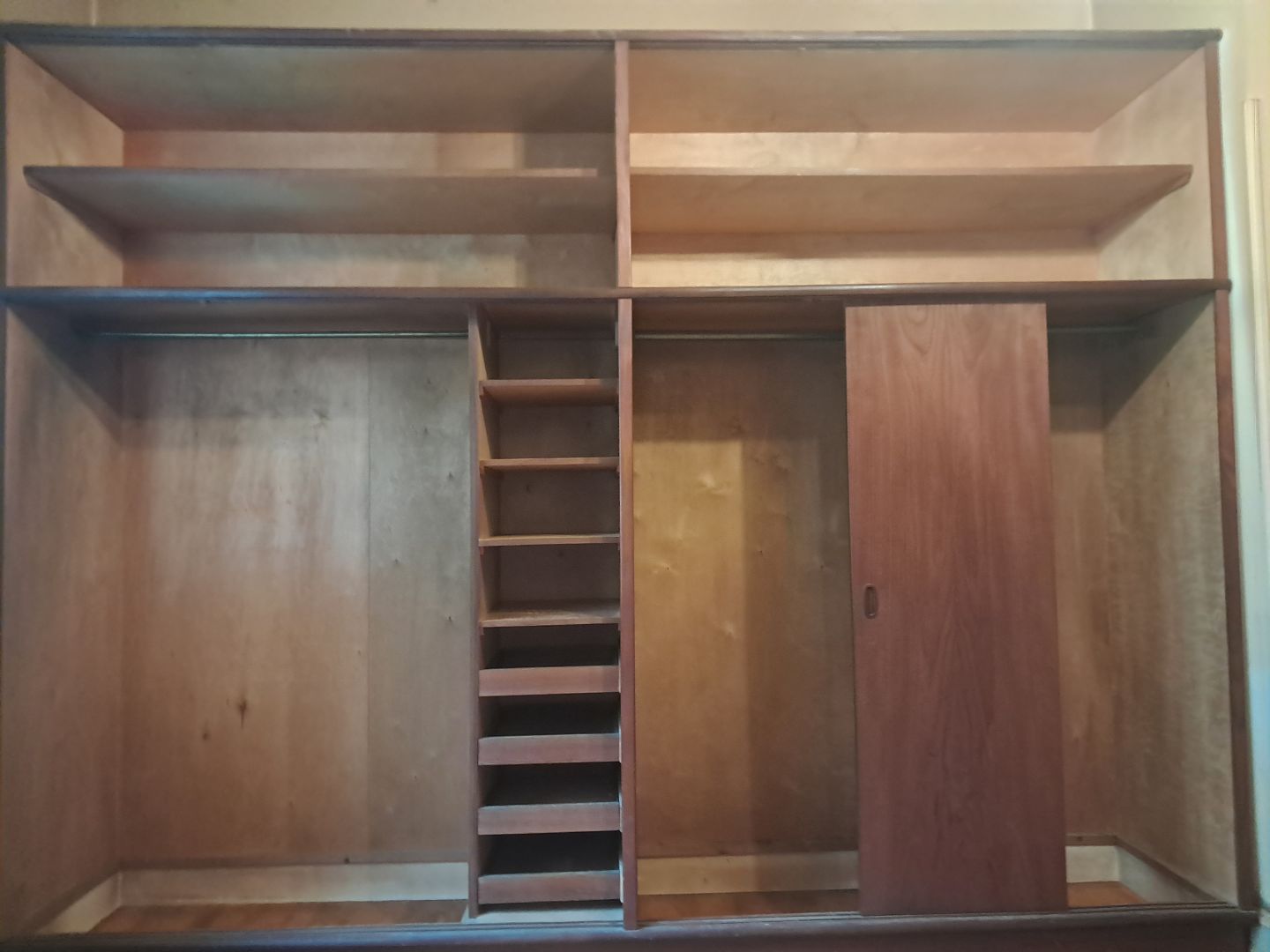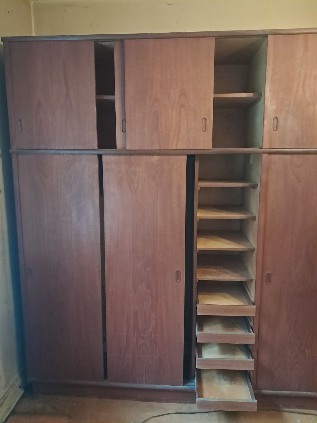 6 Dørs-klædeskab i fineret teaktræ, fra 1960erne.