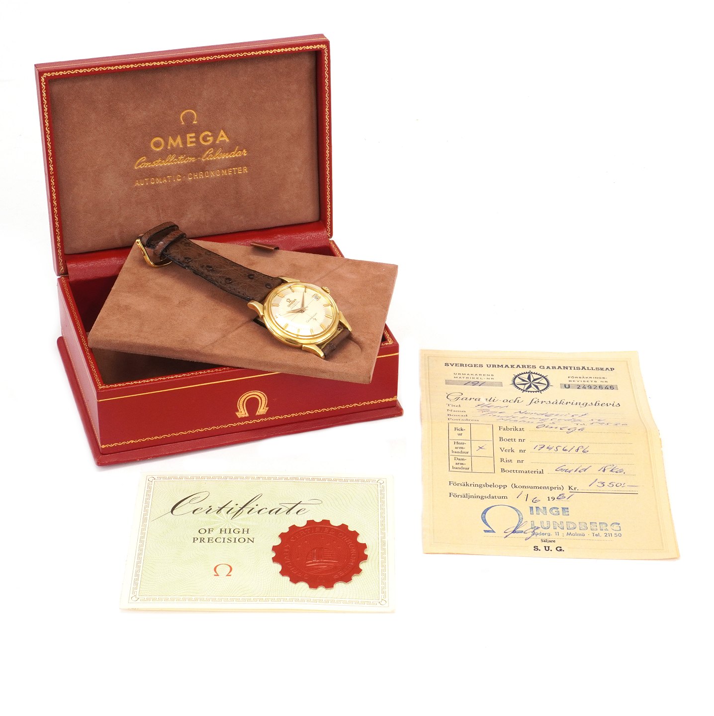 Omega Constellation Pie Pan i 18kt gold with box and papers ref. 14382 82SC sold 01.06 1961