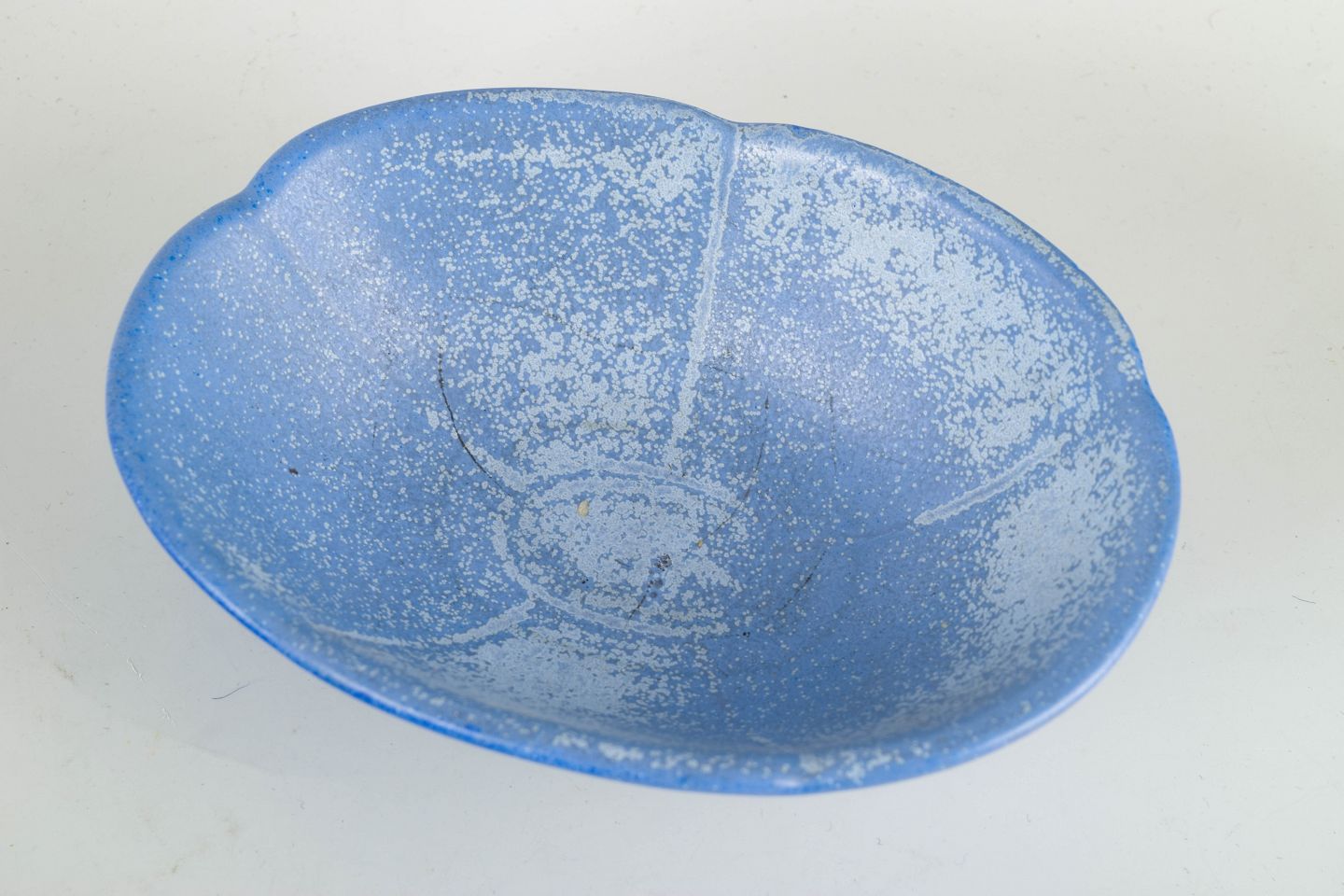 Elegant stoneware bowl with a soft, organic form and matte blue glaze with a finely speckled surface — a characteristic example of Nylund’s refined sense of proportion and subtle color harmony. The bowl reflects the calm modernist aesthetic that defined Rörstrand’s mid-century production.