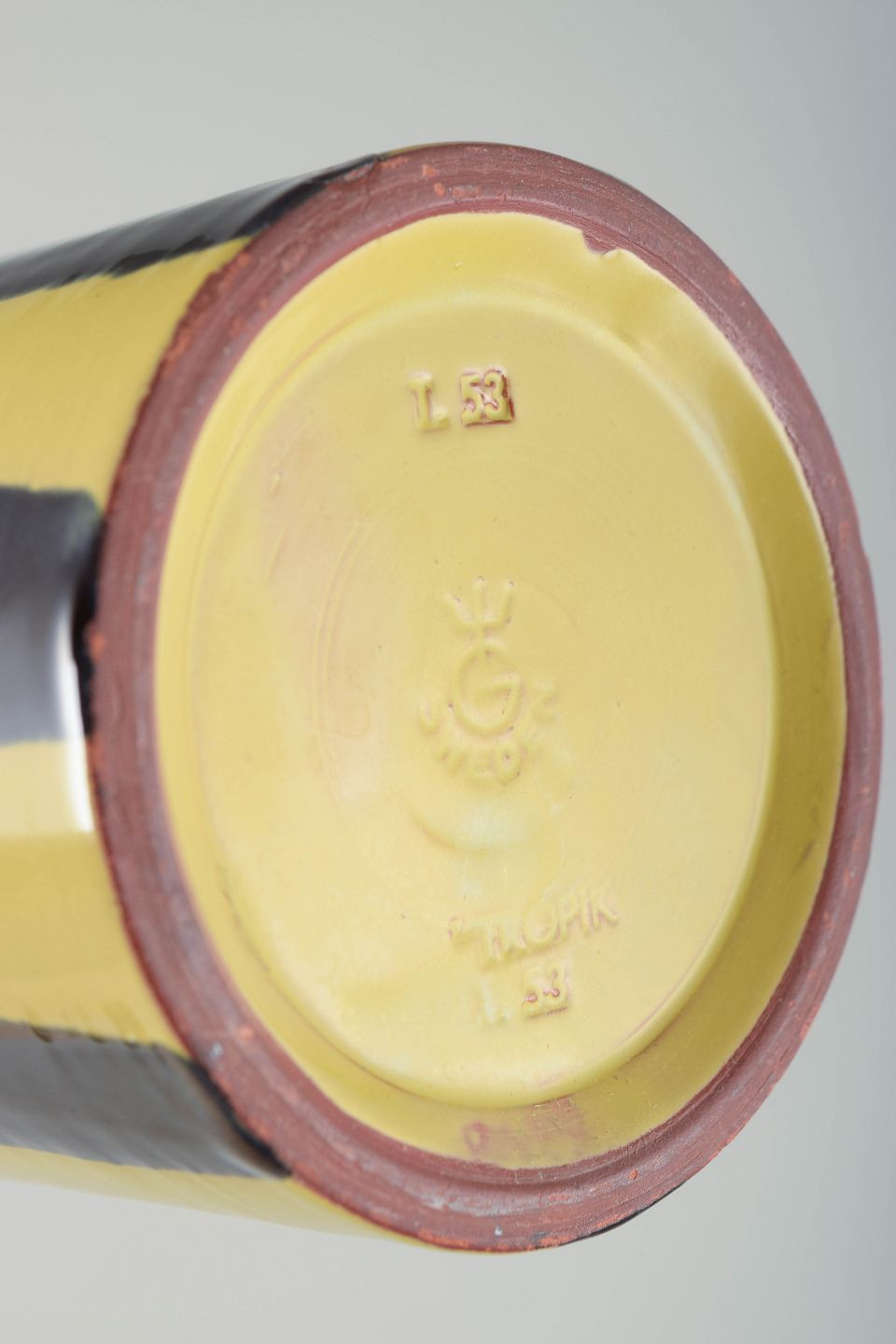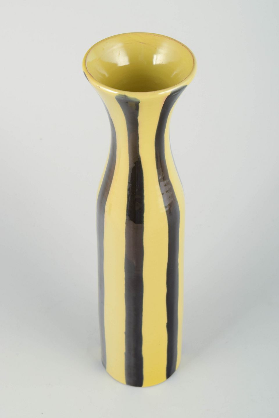 Tall, slender vase with hand-painted vertical stripes in yellow and black — a classic example of Gefle’s colourful and graphic mid-century design.