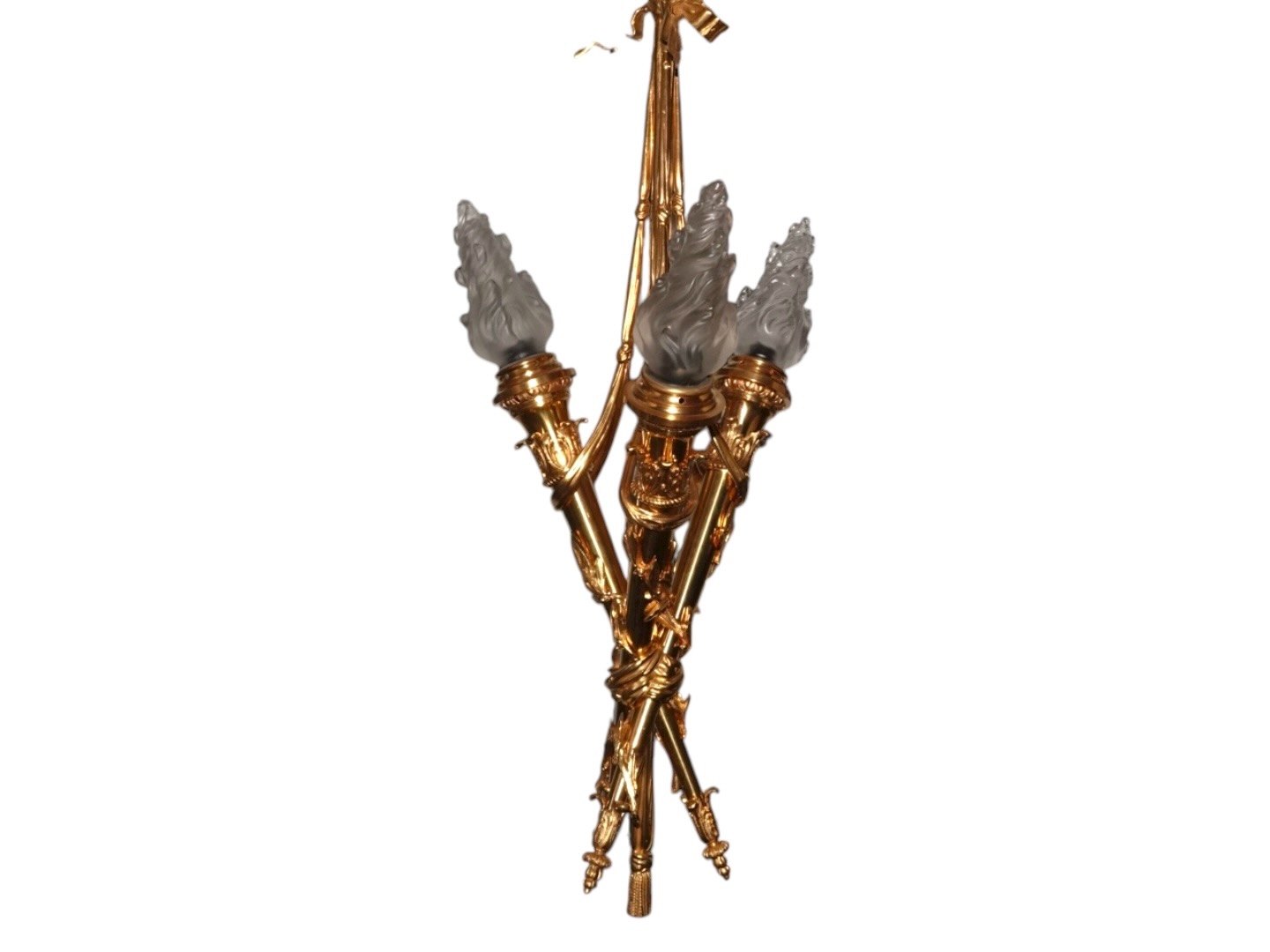 Smal Empire Lysekrone i massiv forgyldt bronze med tre fakler