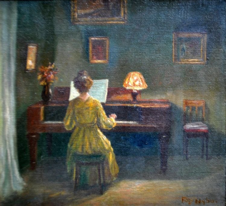 Friis Nybo, Poul (1869 - 1929) Denmark: Woman playing the piano.