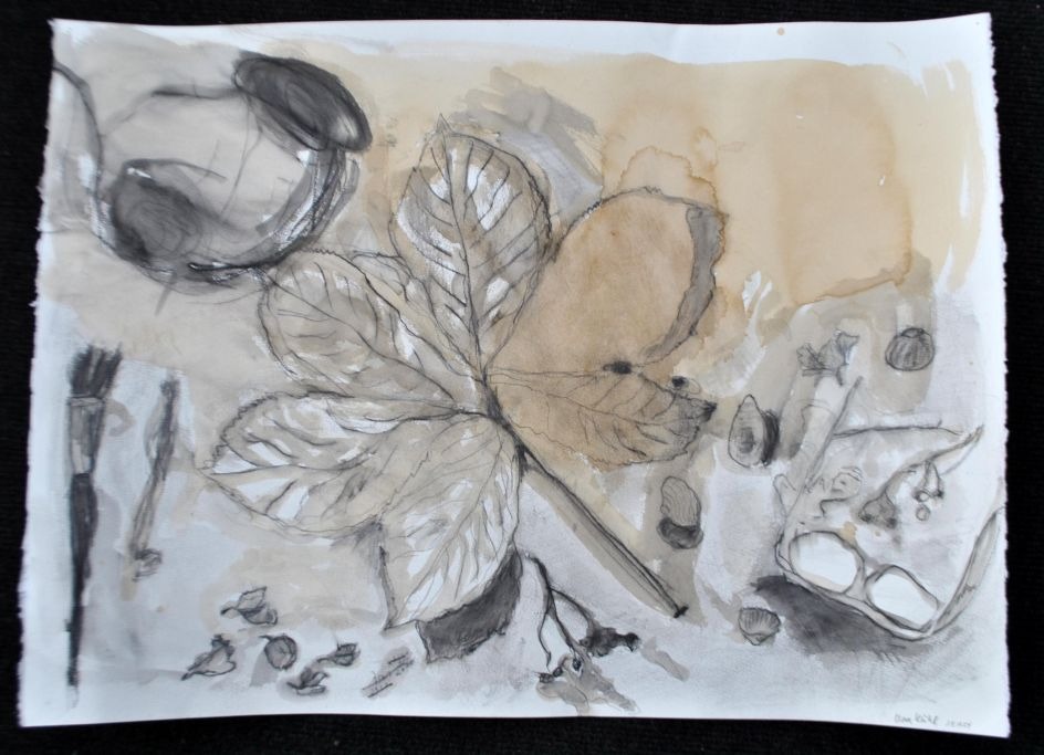 Kühl, Lena (1950 -) Denmark: Chestnut leaf, 2024. Watercolor and pencil on paper. Signed: Lena Kühl 29.10.24. H: 56 cm. W: 76 cm.