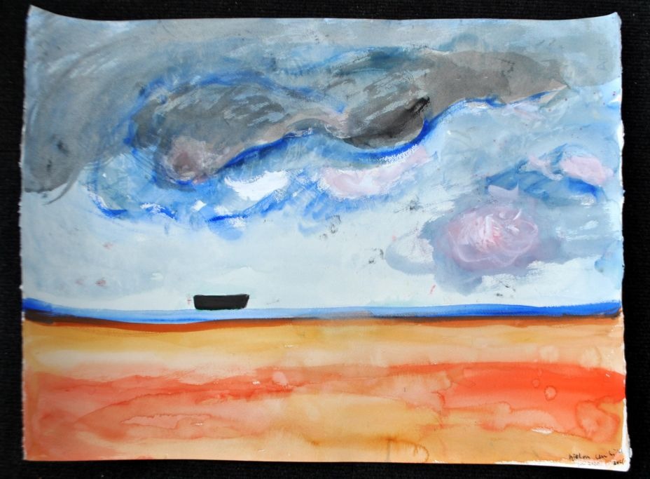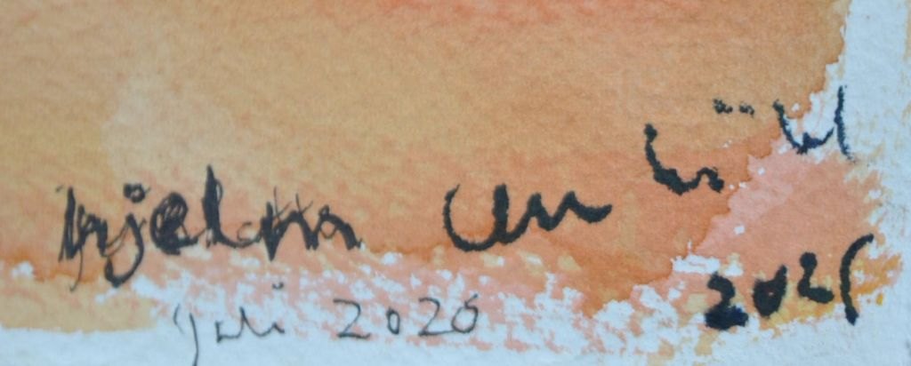 Kühl, Lena (1950 -) Denmark: Hjelm, 2021. Watercolor on paper. Signed: Hjelm July 2020. Lena Kühl 2021. H: 56 cm. W: 76 cm.