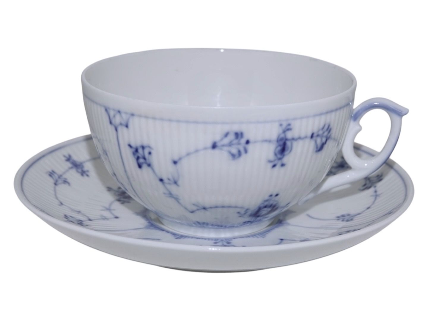 Royal Copenhagen Blue Fluted Plain, extra large tea cup (breakfast cup) with matching saucer.